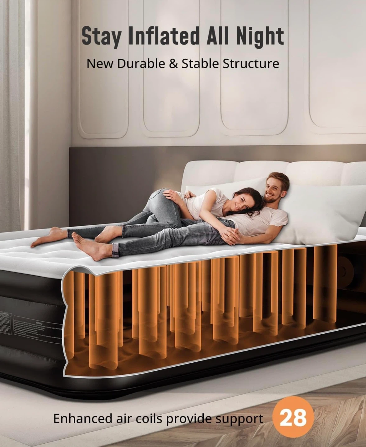 Comfortable Full Size air mattress with built-in electric pump. Inflates quickly in about 3 minutes. High 18-inch height feels like a real bed β perfect for guests, home use, or travel.