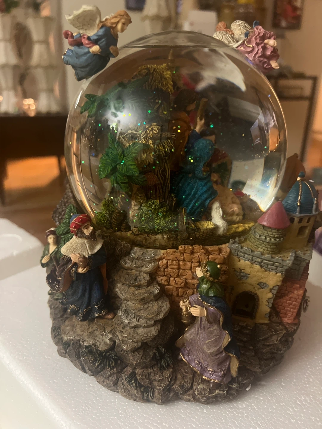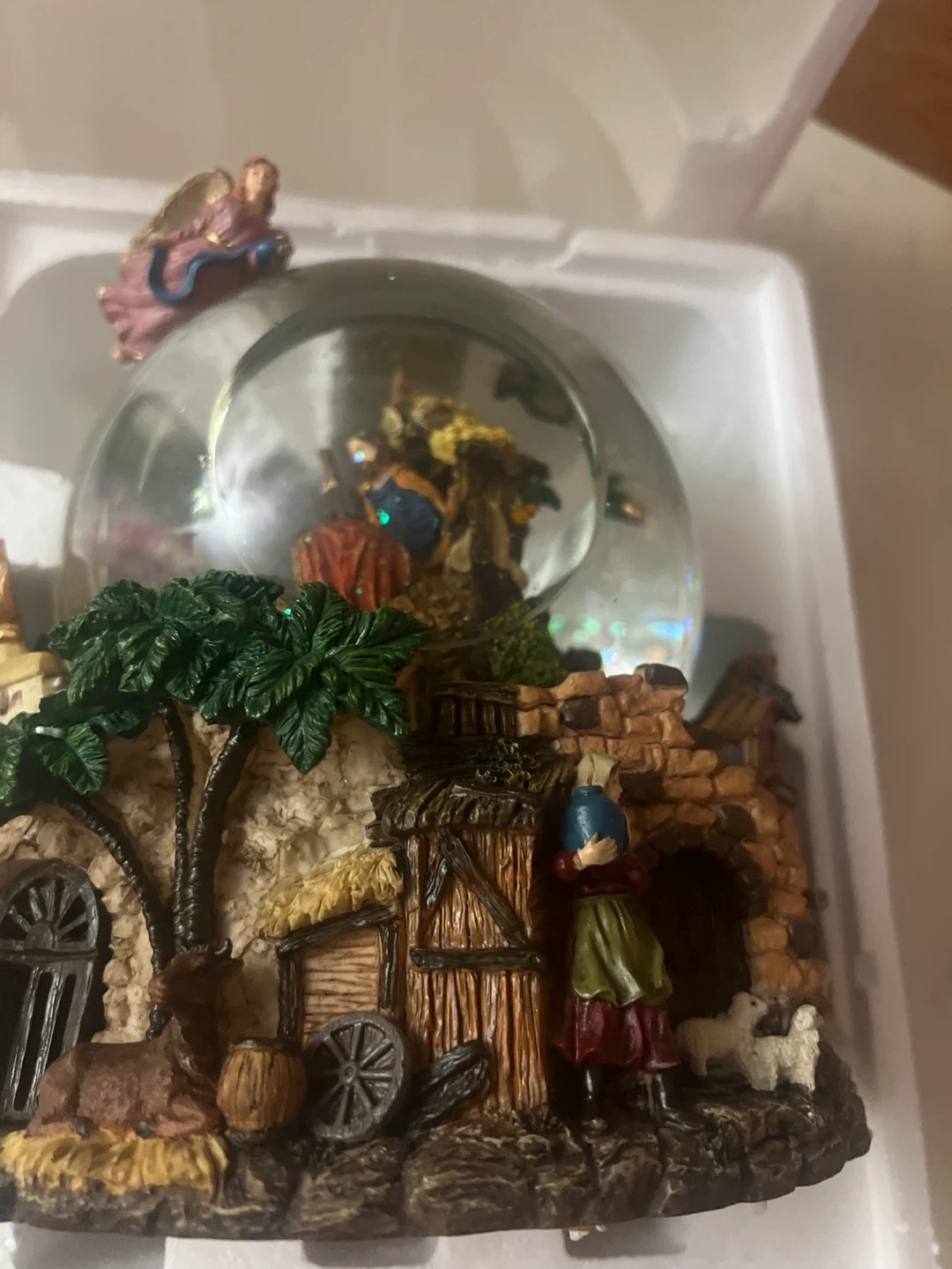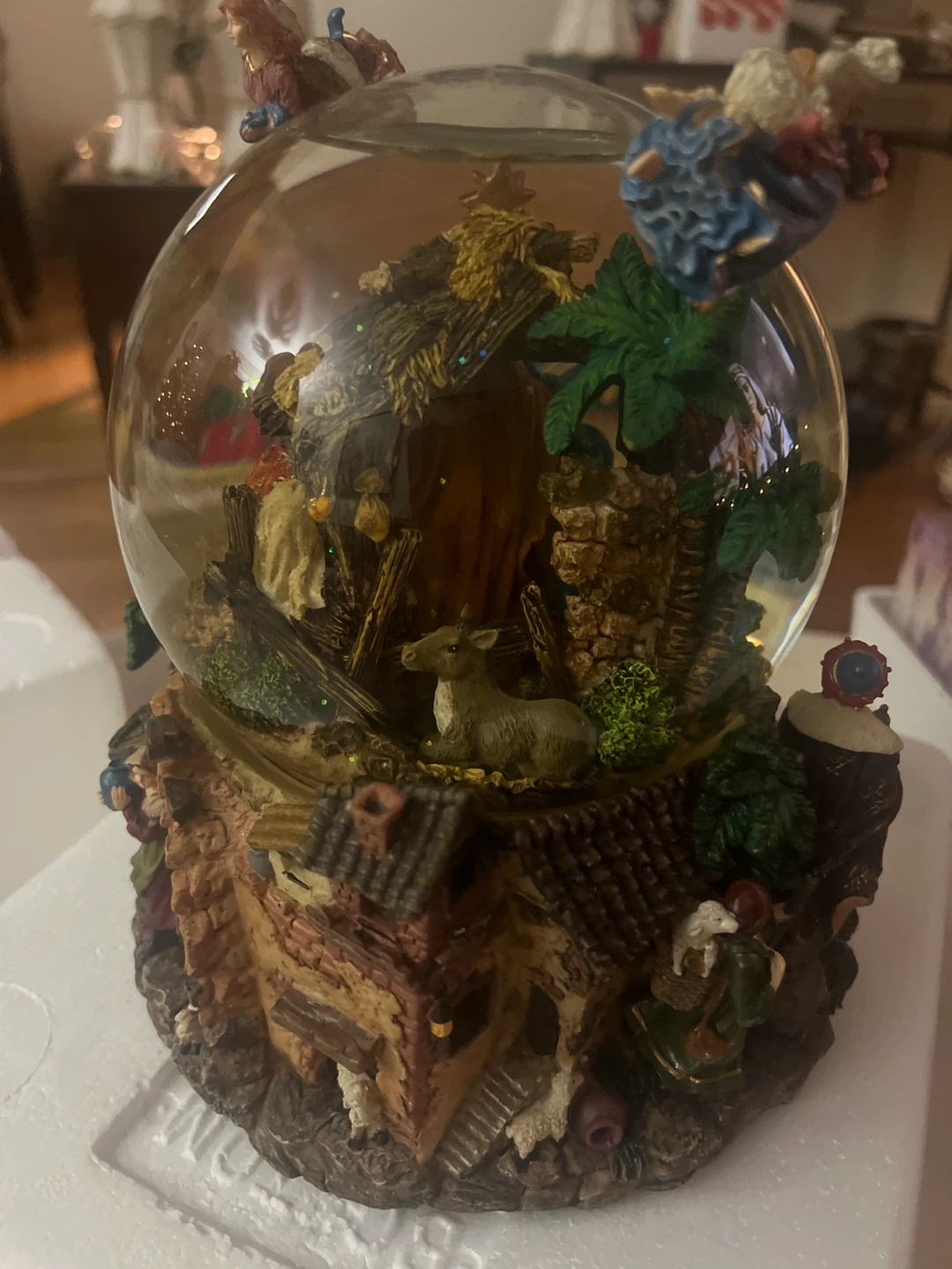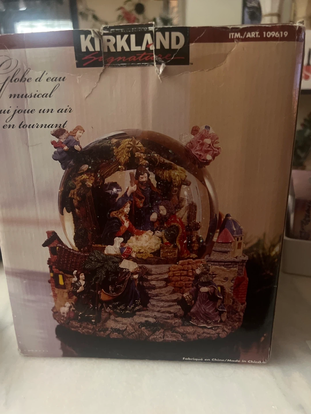 Selling a Kirkland Signature musical water globe. It plays "Oh Little Town of Bethlehem" and features a rotating air current inside the globe. The globe itself is made of 120 mm glass. Comes in the original box