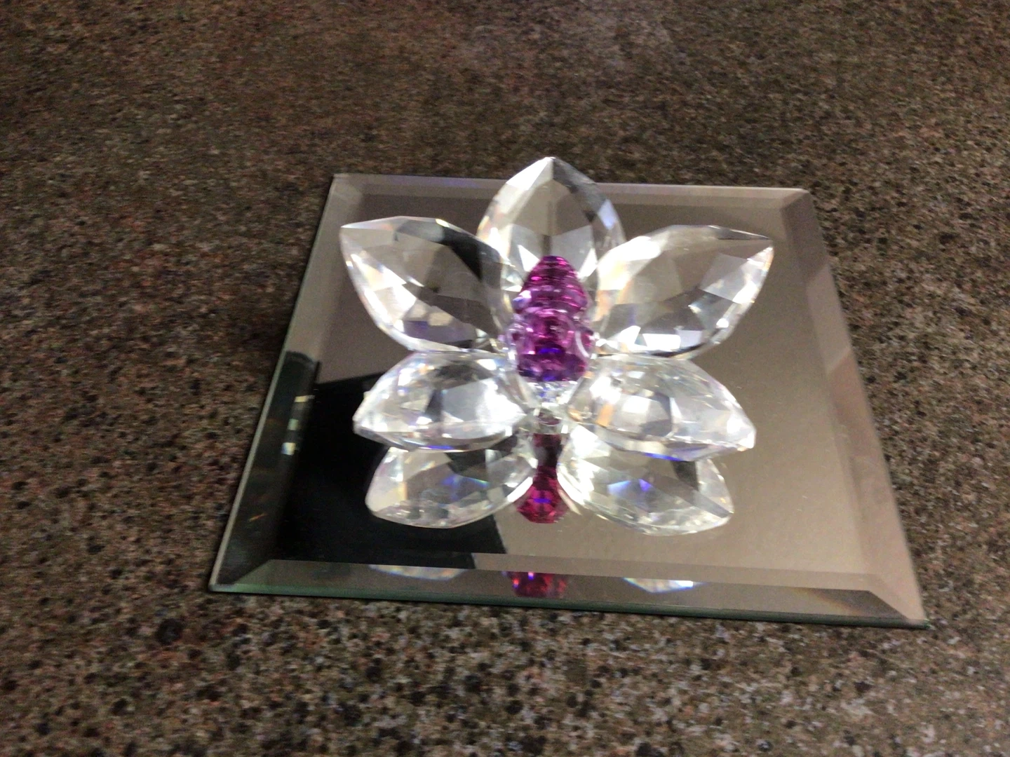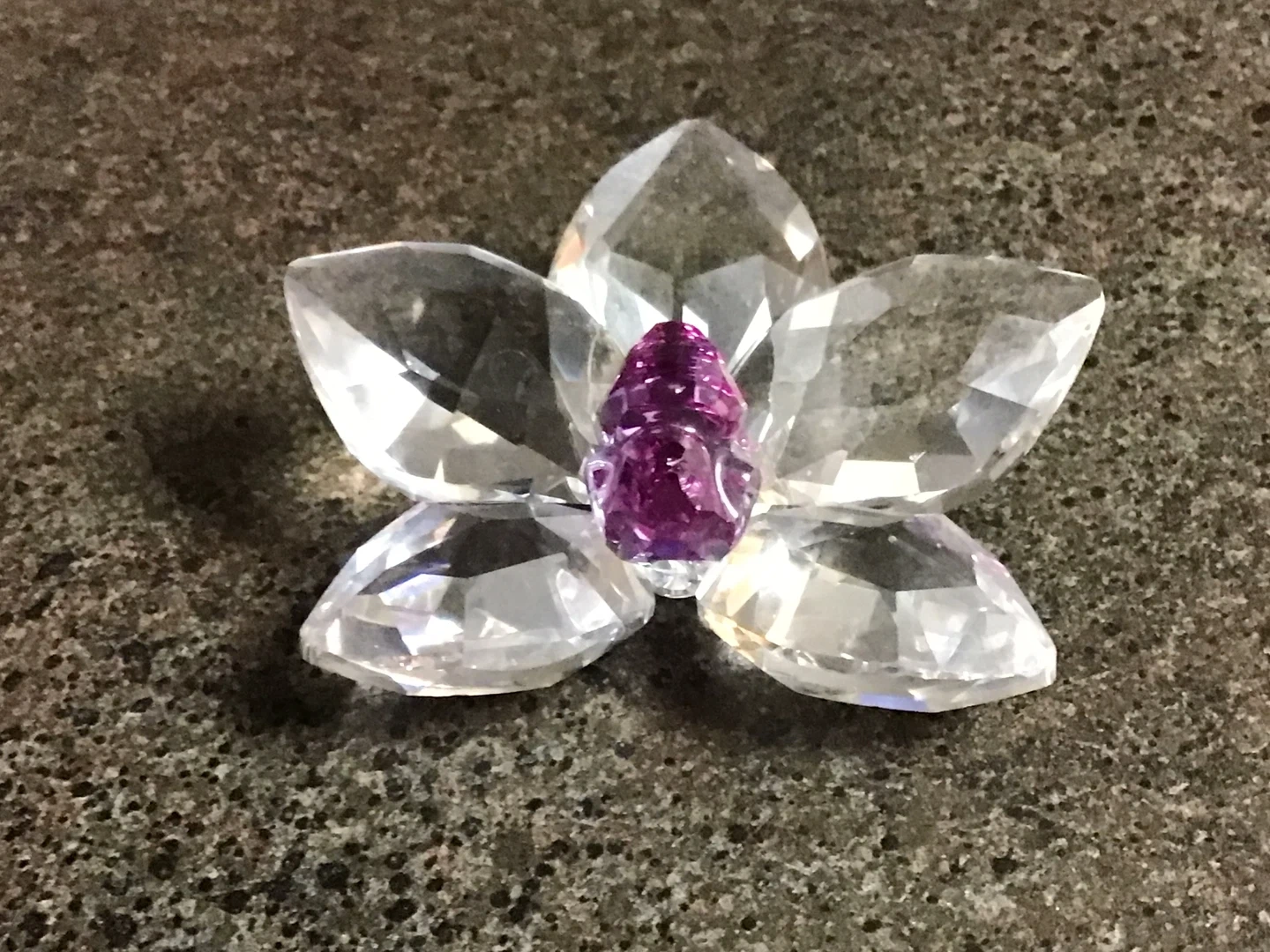 A lovely crystal flower figurine! It features clear crystal petals and a purple crystal centre. Perfect for adding a touch of sparkle to any room