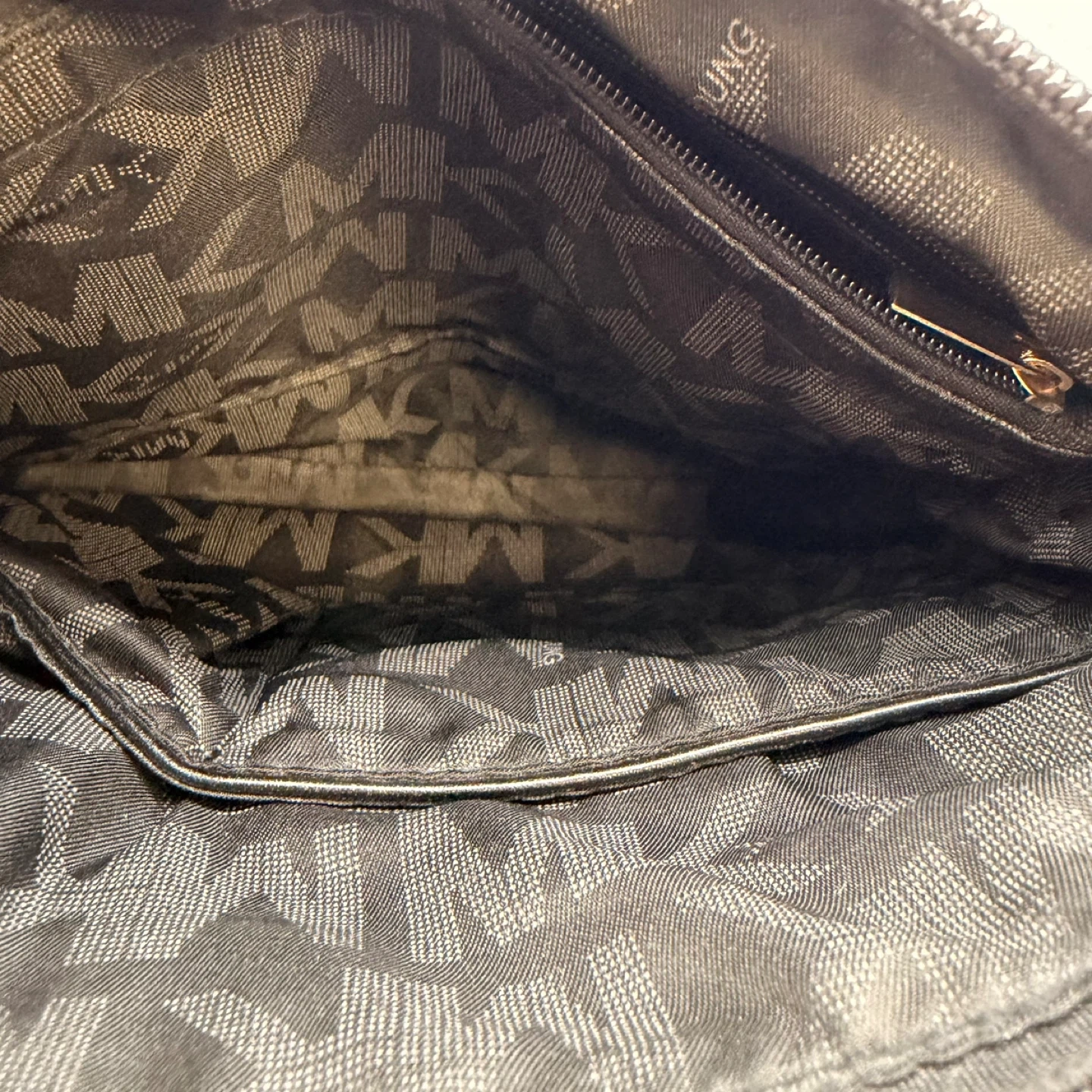 Very clean inside and out. Classic black and grey MK monogram with gold hardware and adjustable strap. Perfect everyday bag.