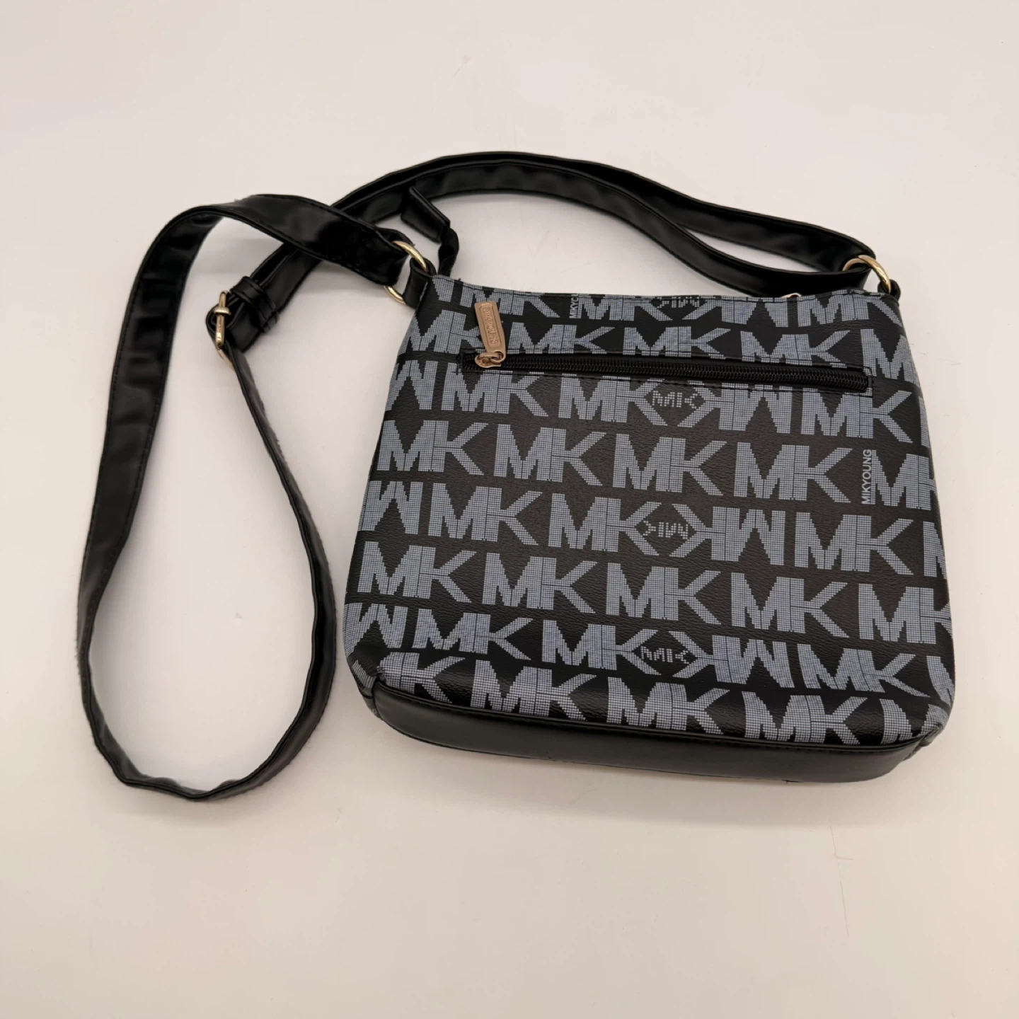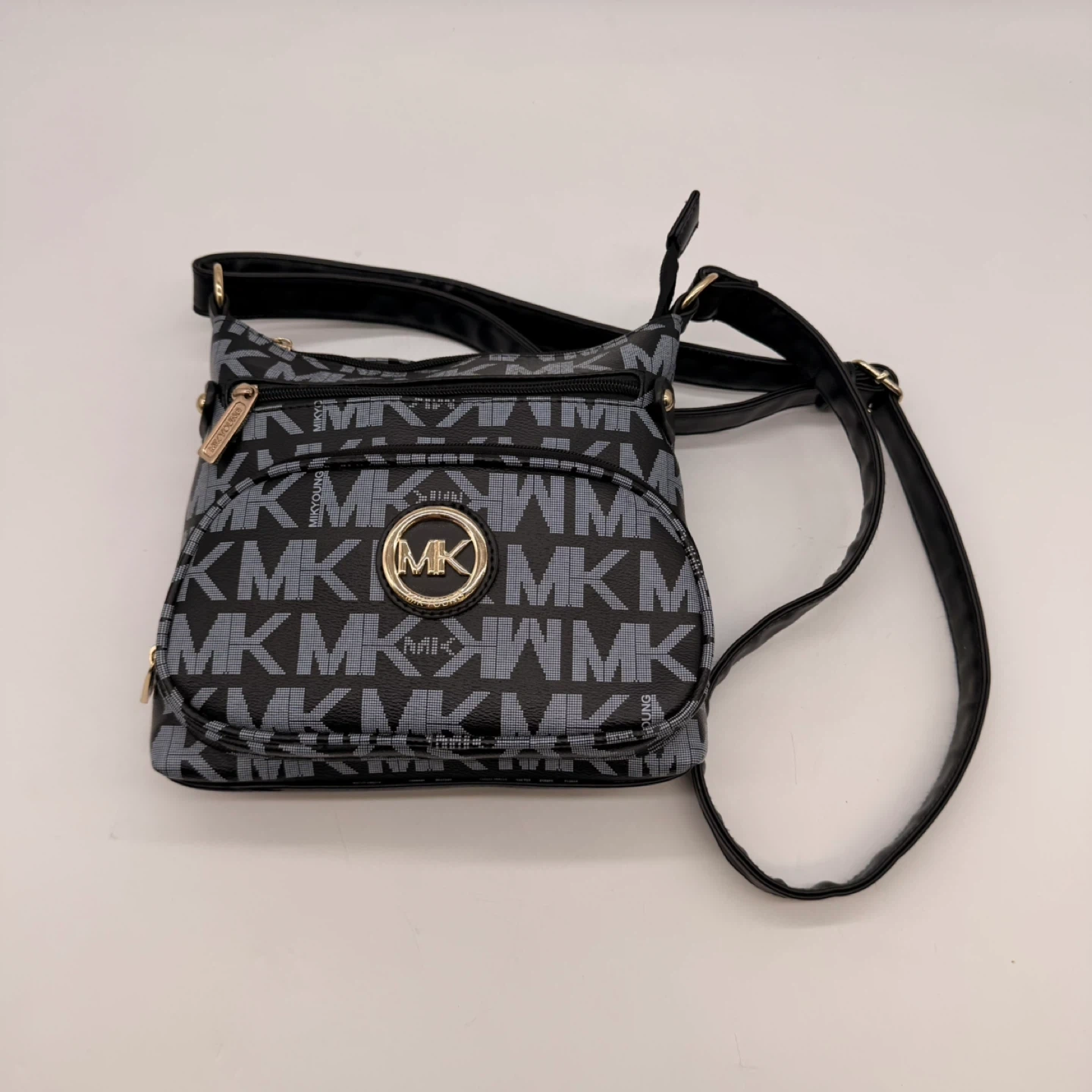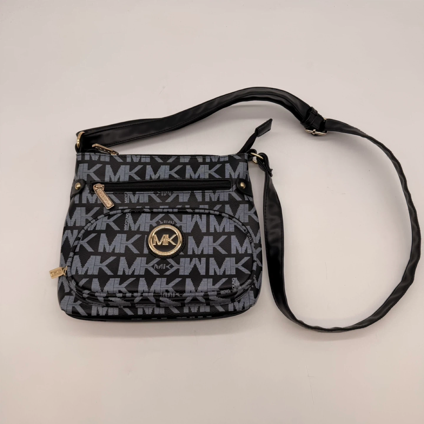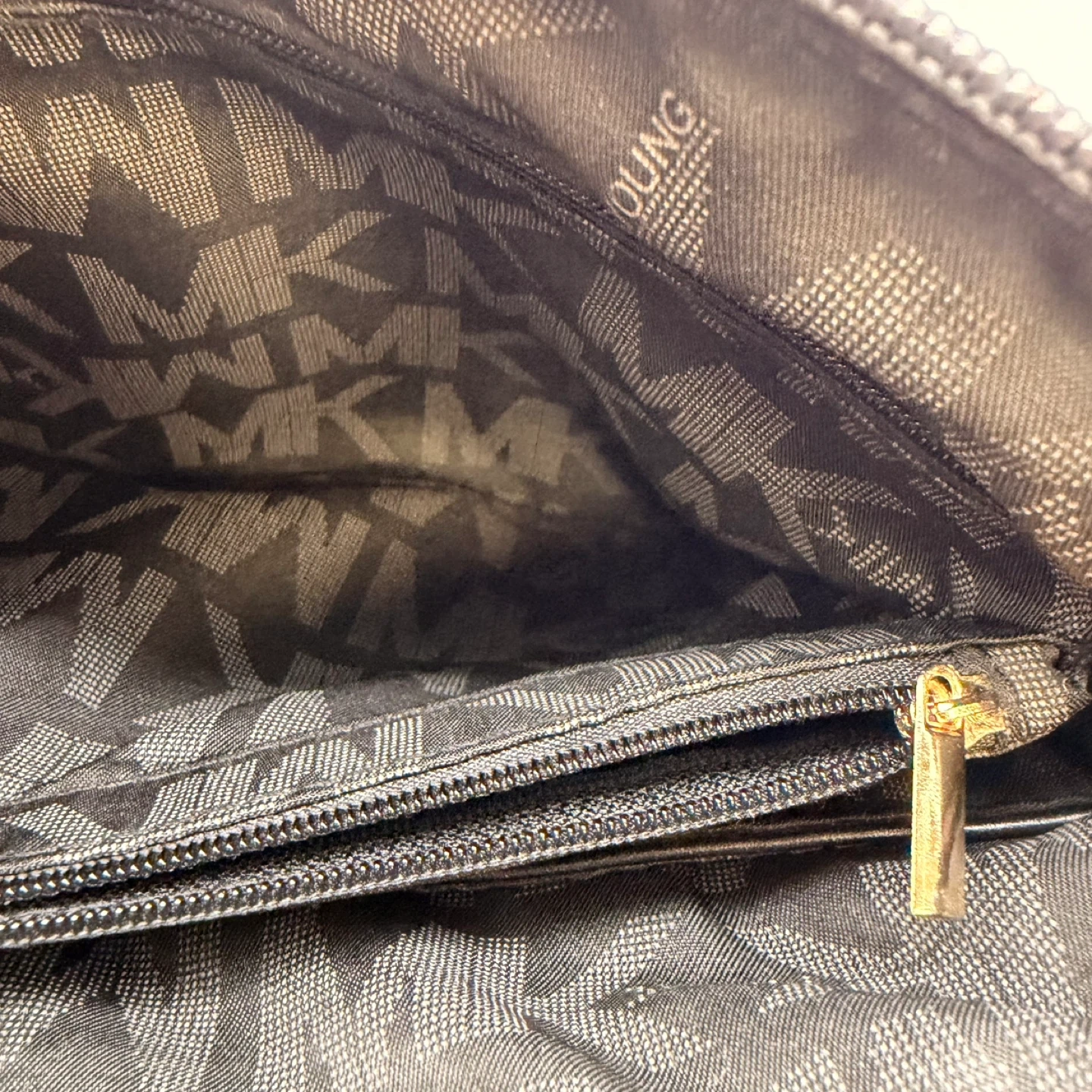 Very clean inside and out. Classic black and grey MK monogram with gold hardware and adjustable strap. Perfect everyday bag.