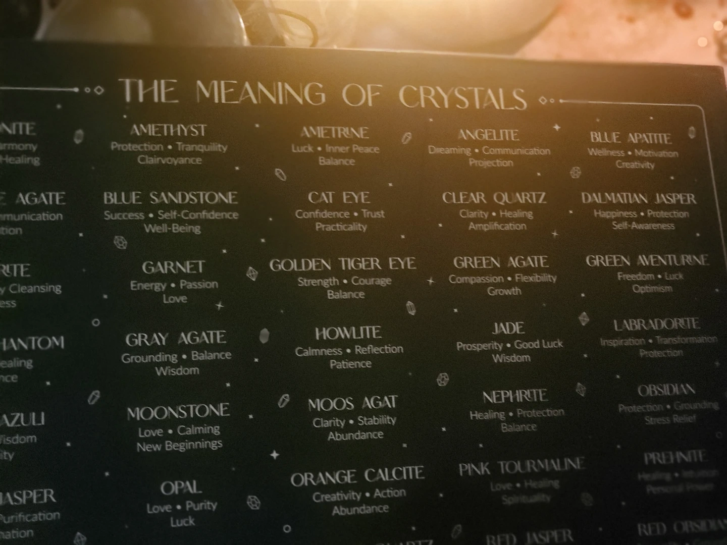 Selling a Veol natural gemstone set, which includes 50 pieces. The set comes in its original box. It's a great way to explore the meanings and energies of different crystals!