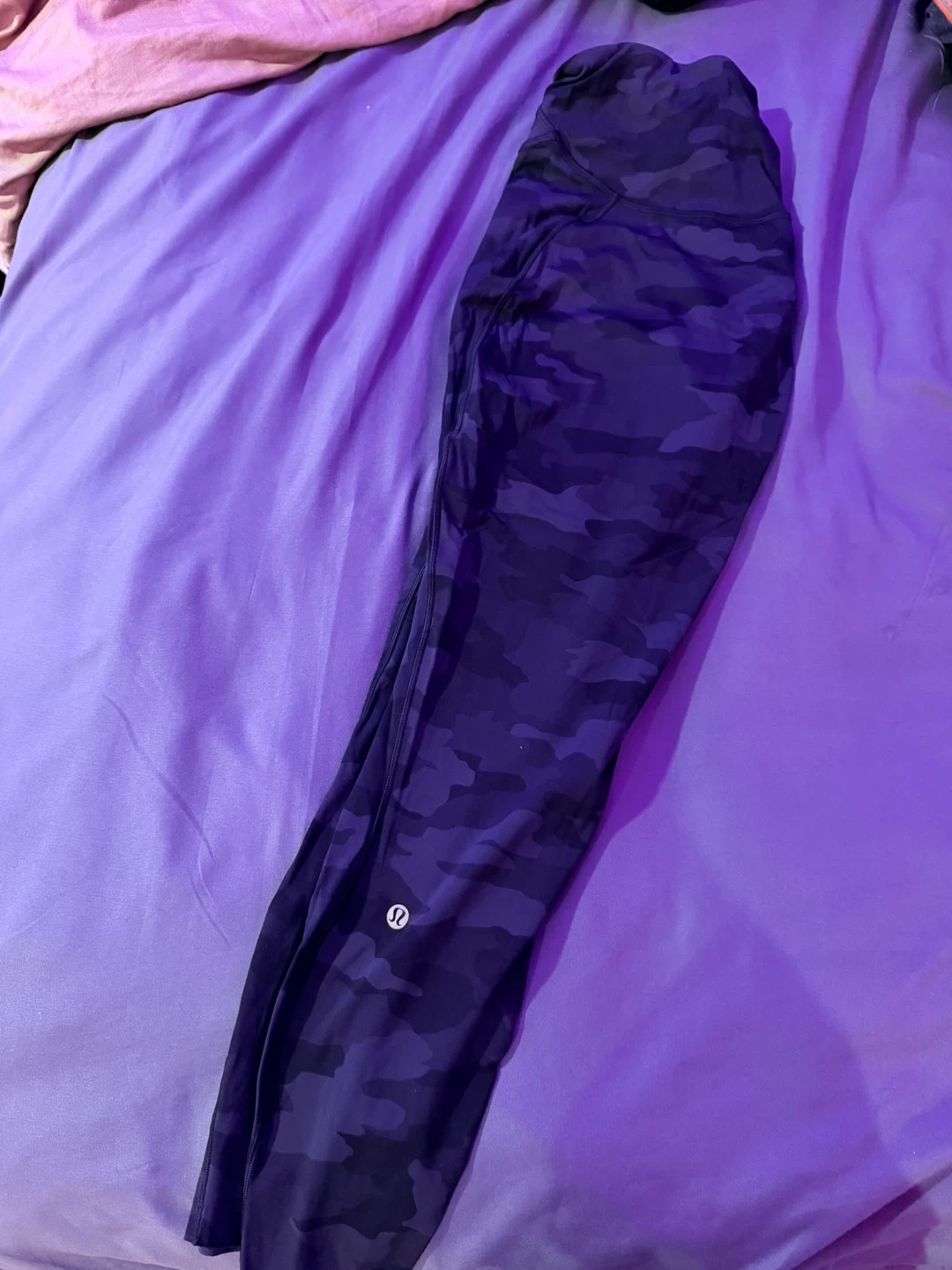 Selling a pair of Lululemon leggings in a cool camo pattern! They're a size 10 and in great condition. Perfect for workouts or just lounging around!