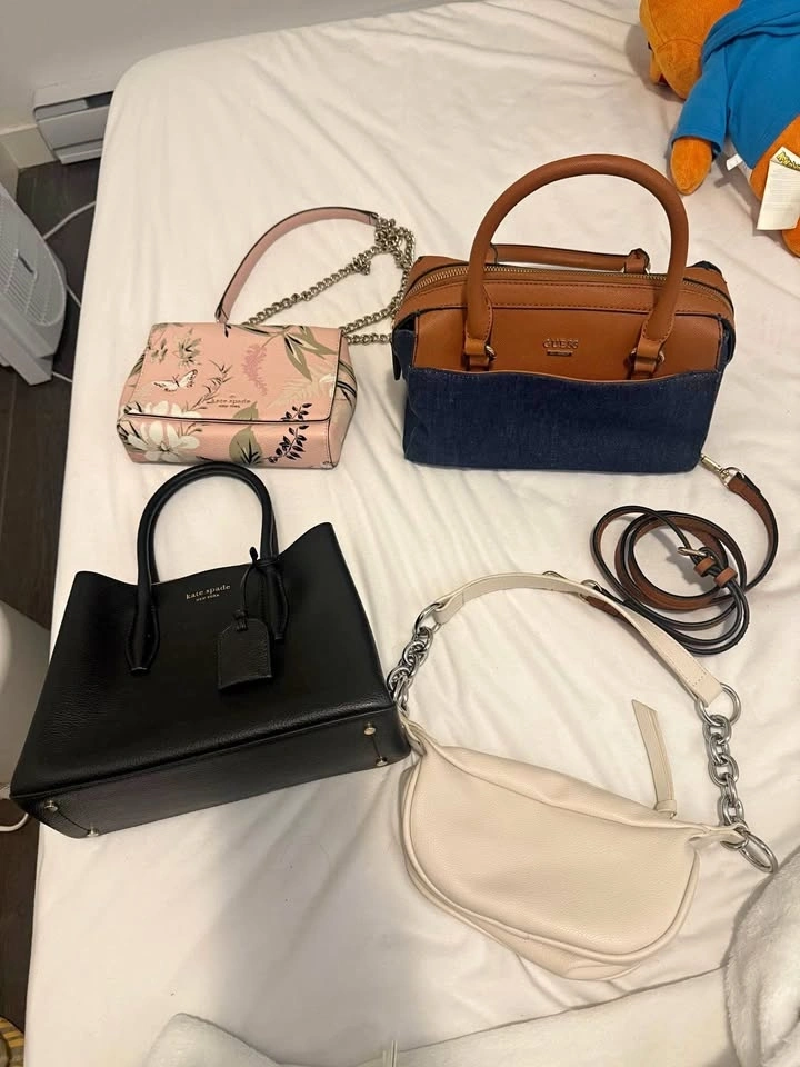 Downsizing my collection. All of these have been gently used. I have two Kate spade bag, 1 guess bag, and 1 from H&M. Pick up in Surrey, near Gateway Station.