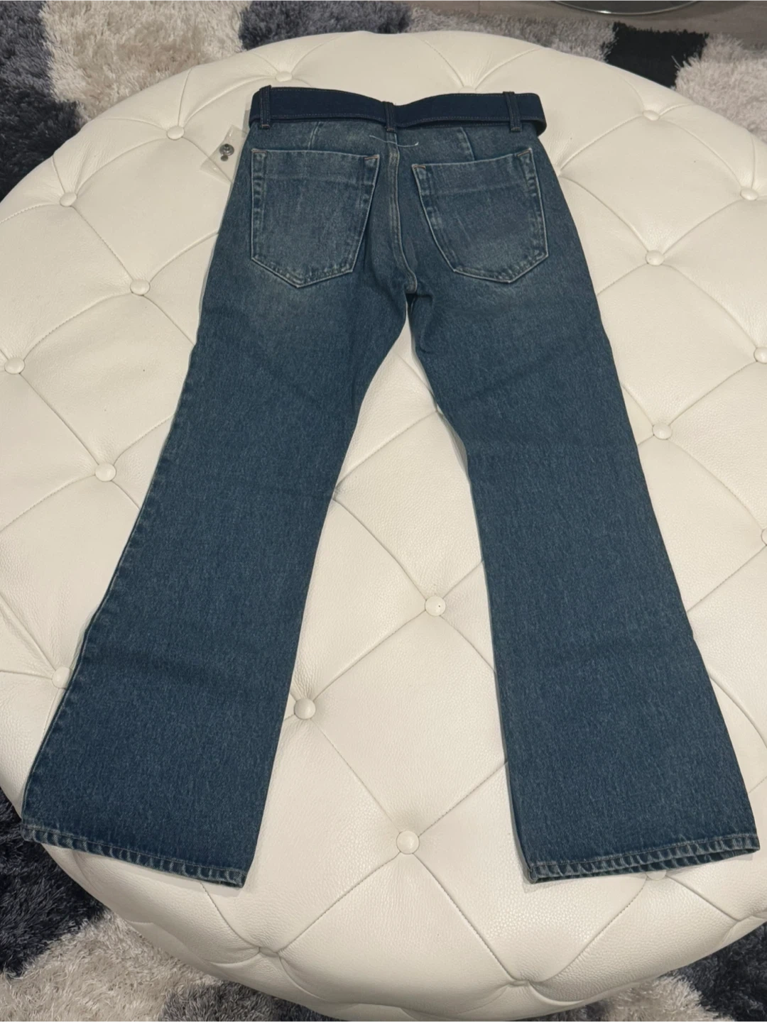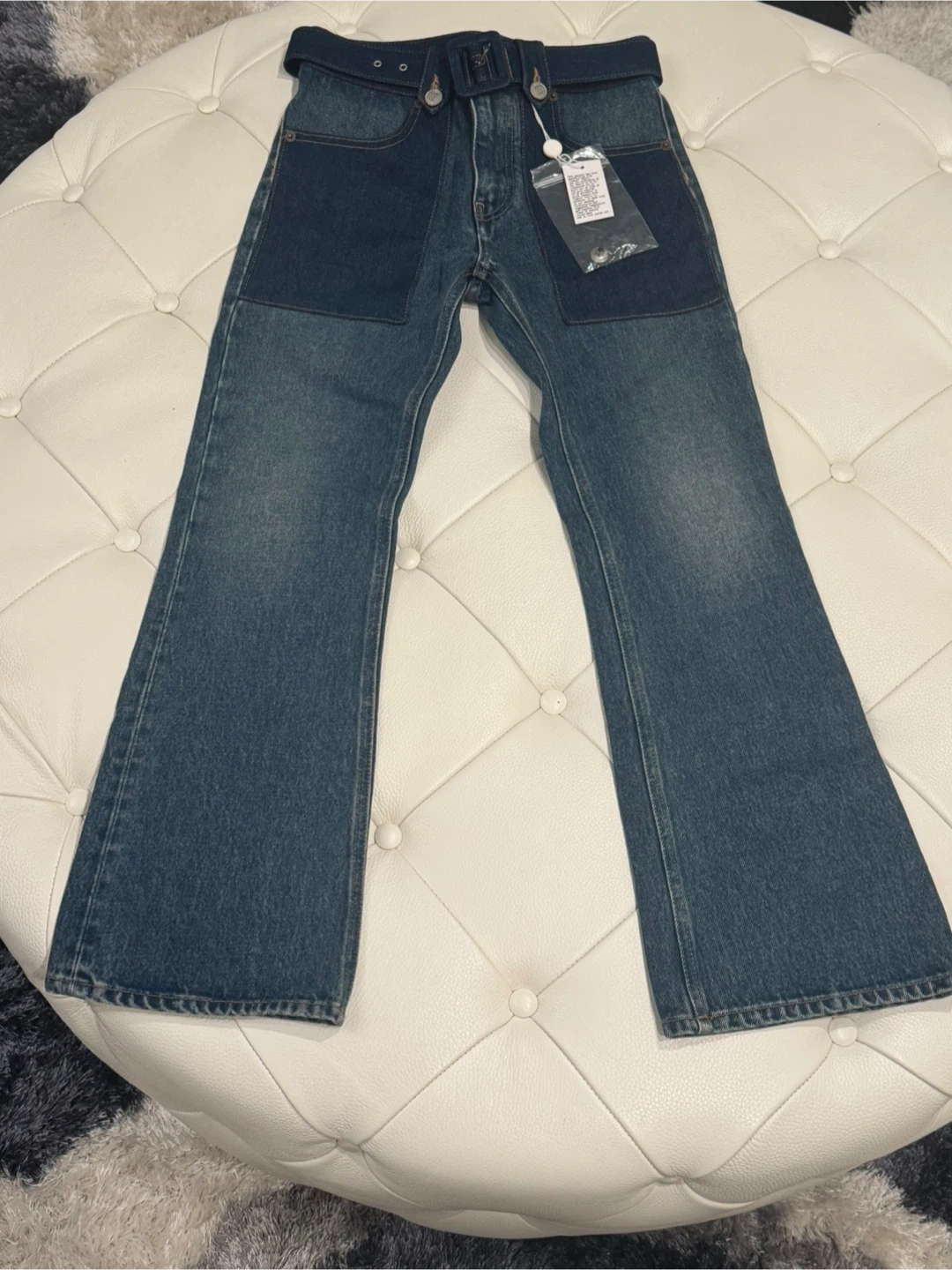 These Maison Margiela jeans are in great condition! They feature a stylish belted design and a flattering flare cut. Perfect for adding a touch of designer flair to your wardrobe. Brand new, never worn.