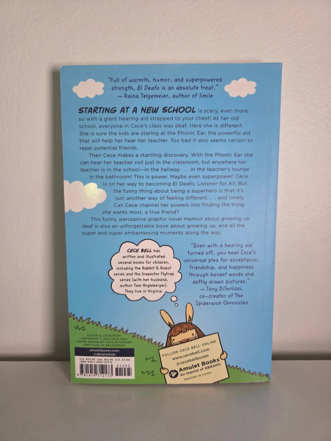 Selling the graphic novel El Deafo by Cece Bell! It's a #1 New York Times bestseller. This book is a funny, perceptive graphic novel memoir about growing up deaf and all the super and super embarrassing moments along the way