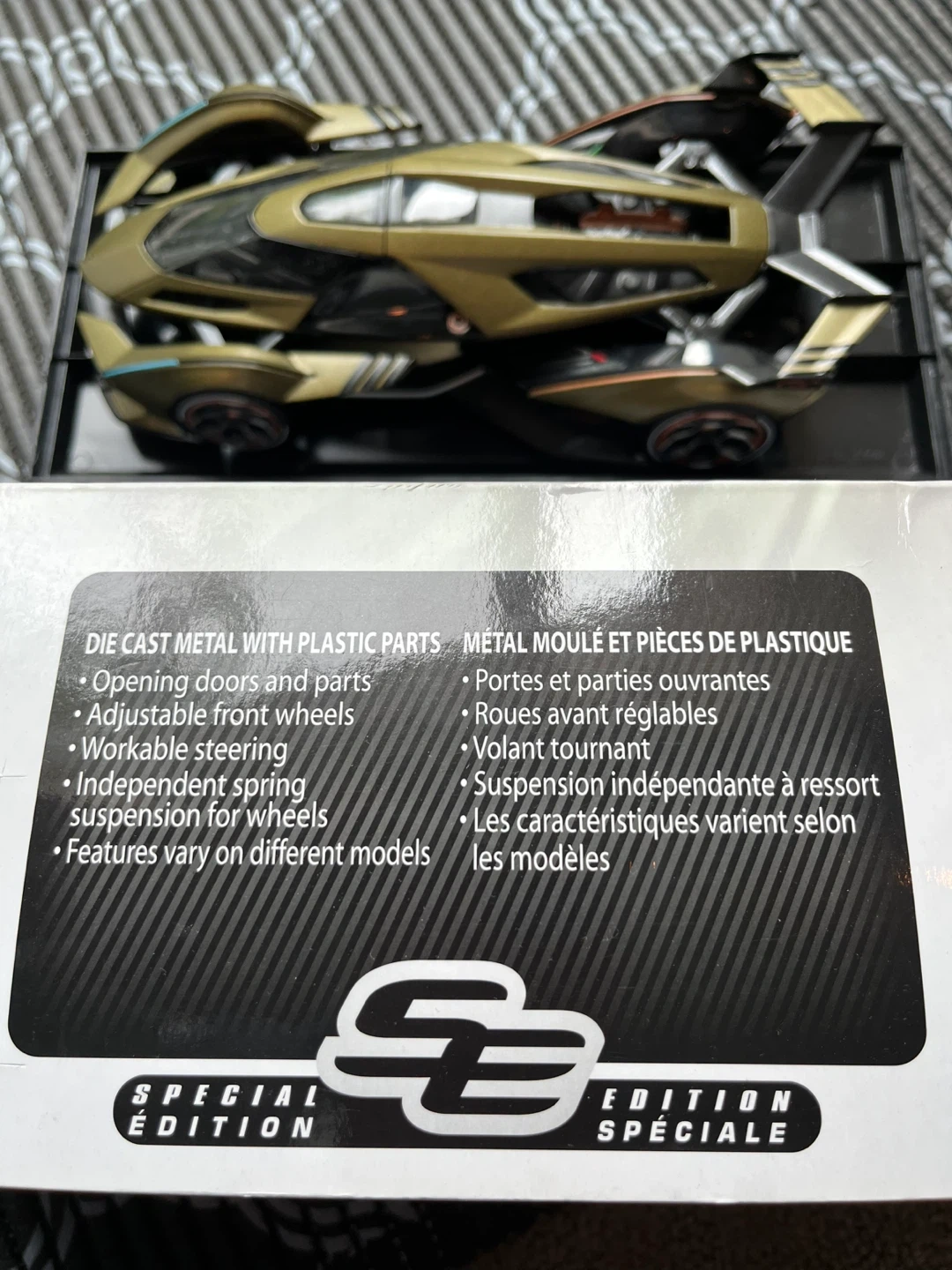 Selling a Maisto Special Edition diecast car. It's a really cool model with a unique design and a gold finish. Great for collectors or anyone who appreciates detailed car models!