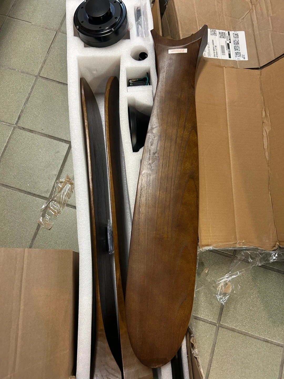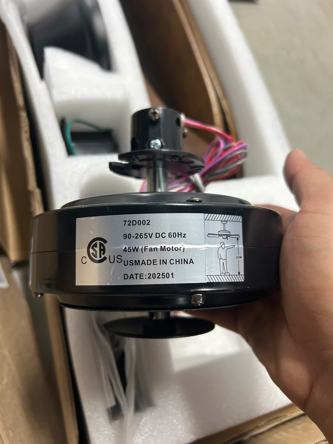Selling a brand new 45W ceiling fan! It comes with a remote controller and all the necessary components. The fan motor is 90-265V DC 60Hz. It's still in its original box, ready for a new home!.