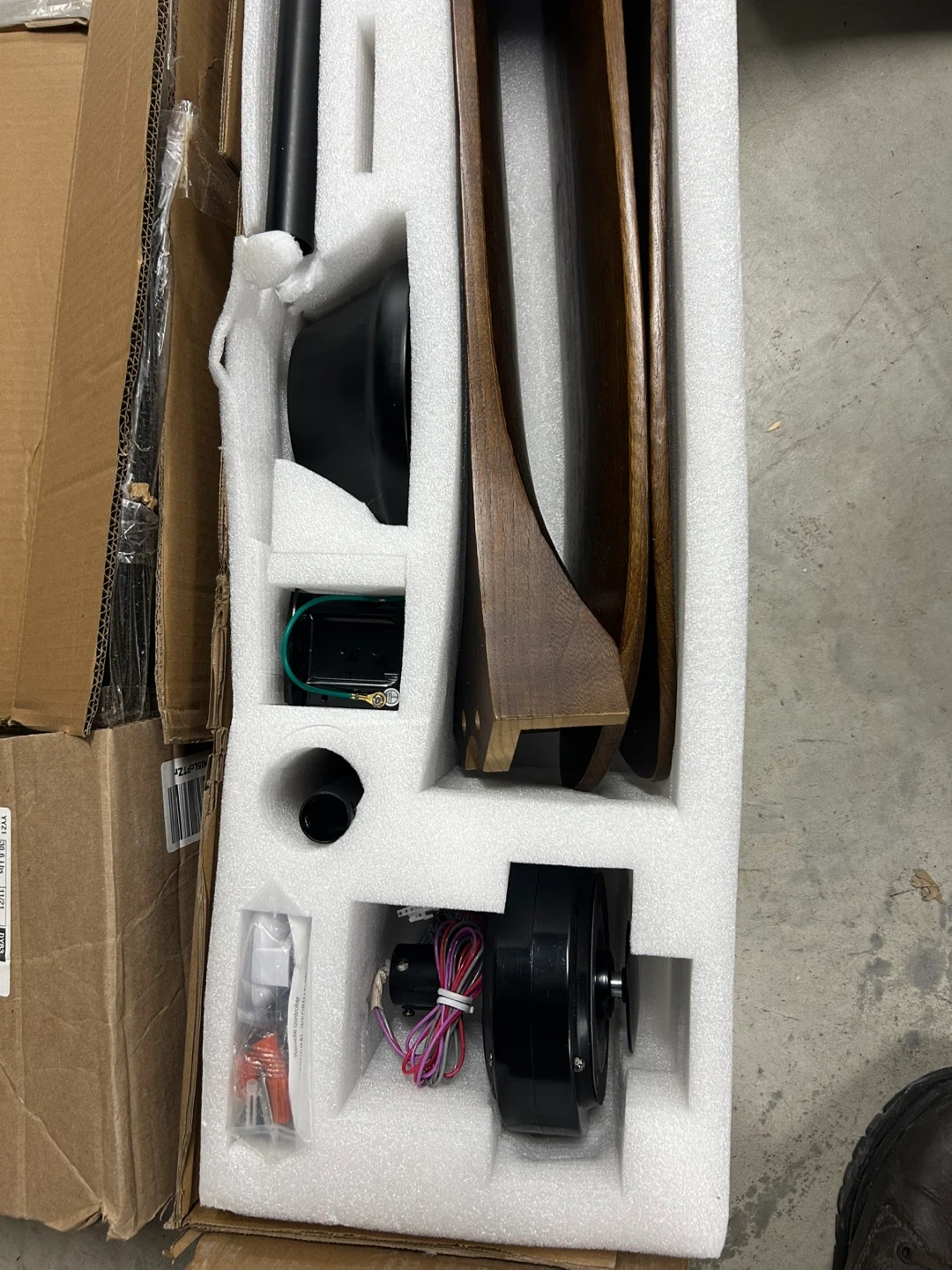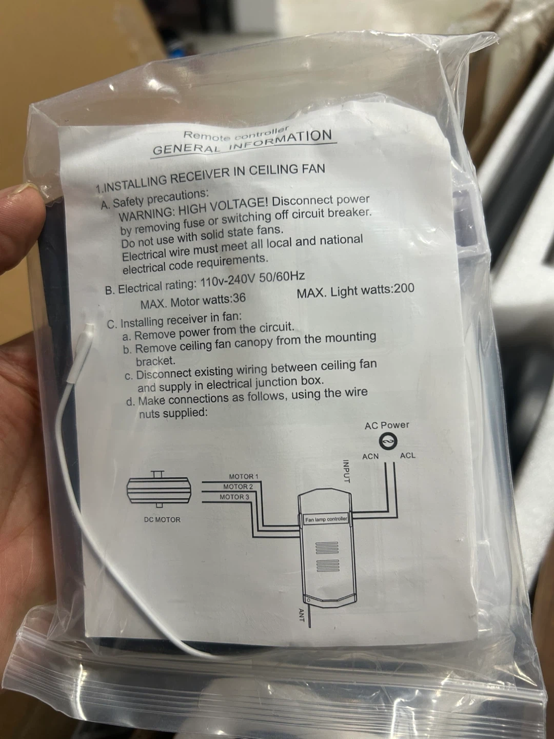 Selling a brand new 45W ceiling fan! It comes with a remote controller and all the necessary components. The fan motor is 90-265V DC 60Hz. It's still in its original box, ready for a new home!.