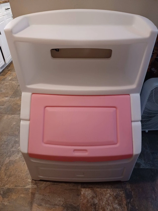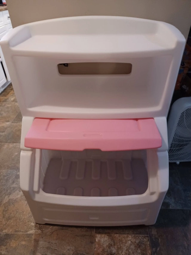 Excellent condition. The Step2 Lift & Hide Bookcase Storage Chest in Rose Pink is the perfect solution for helping kids stay organized. Featuring spacious shelves for displaying books and showcasing smaller toys, this organizer promotes easy access and tidiness.