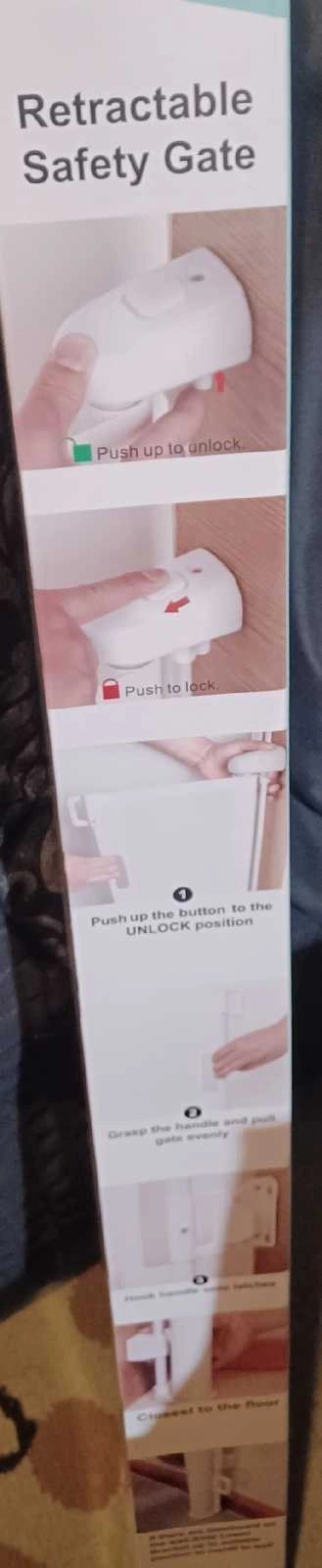 Keep your little ones safe with this new retractable safety gate, perfect for doorways, hallways, and stairs! This gate extends up to 120cm and is suitable for both indoor and outdoor use. It's easy to install and operate, making it a convenient solution for childproofing your home. This gate is 86cm tall and comes in black.