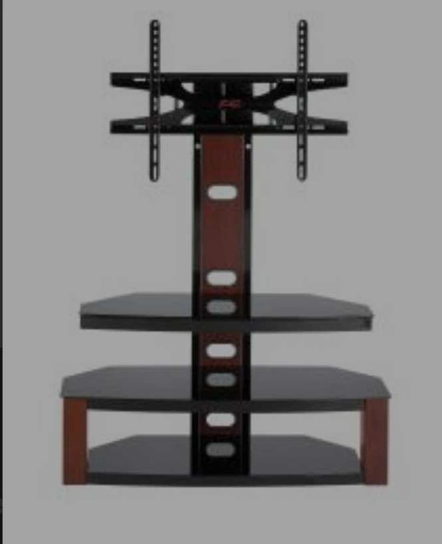 Spruce up your entertainment area with this stylish and functional TV stand with mount, perfect for TVs of various sizes. This used stand is in good condition and ready to hold your television and media devices securely. * Features a built-in TV mount, eliminating the need for wall mounting. * Multiple shelves provide ample storage space for DVD players, gaming consoles, and more. * The sleek design complements any modern living room decor. Looking to add a touch of class to your viewing experience? This TV stand is just the ticket! And remember, if you're seeing this ad, it's still available, so don't miss out! Based on Kijiji pricing data, similar stands sell for between $80 and $150. I am pricing this competitively at $110, reflecting its good condition and practical features.