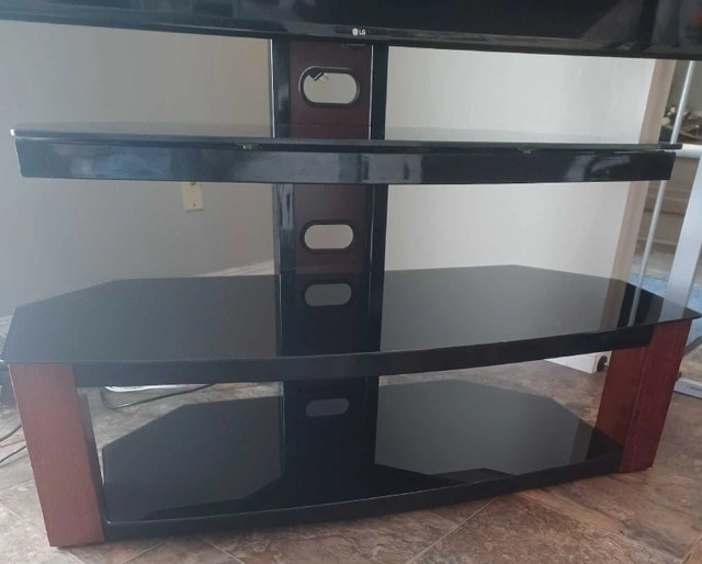 Spruce up your entertainment area with this stylish and functional TV stand with mount, perfect for TVs of various sizes. This used stand is in good condition and ready to hold your television and media devices securely. * Features a built-in TV mount, eliminating the need for wall mounting. * Multiple shelves provide ample storage space for DVD players, gaming consoles, and more. * The sleek design complements any modern living room decor. Looking to add a touch of class to your viewing experience? This TV stand is just the ticket! And remember, if you're seeing this ad, it's still available, so don't miss out! Based on Kijiji pricing data, similar stands sell for between $80 and $150. I am pricing this competitively at $110, reflecting its good condition and practical features.