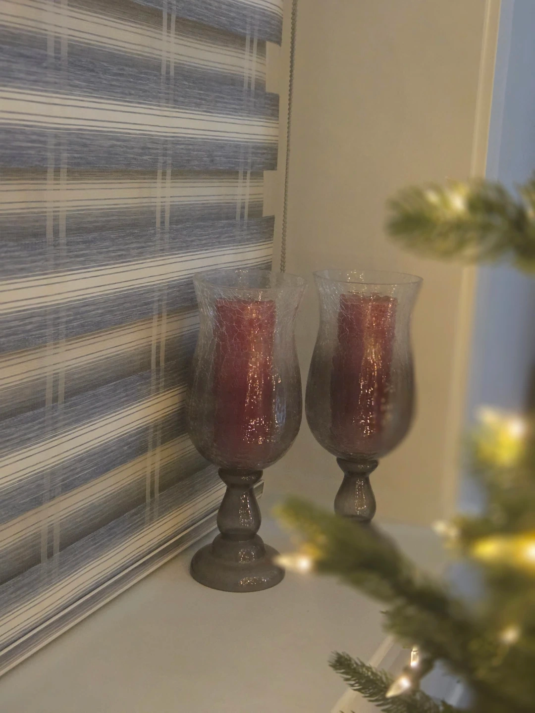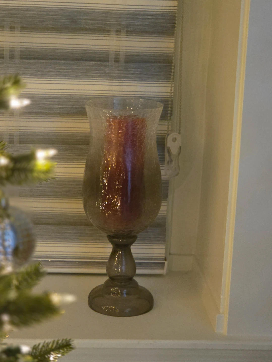 Selling a set of two glass candle holders. They have a crackled glass effect and a pedestal base. They are in great condition and would look lovely in any home