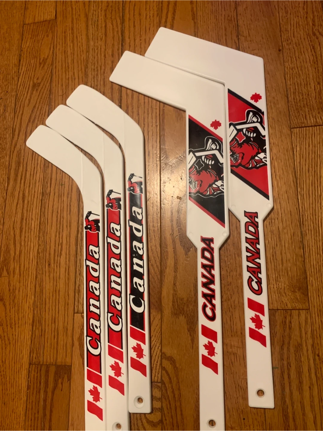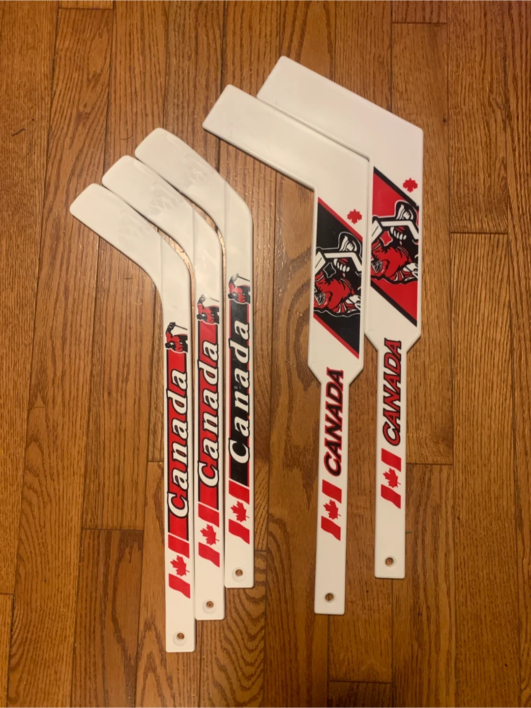 Selling a set of mini hockey sticks with a Canada theme! They're in great shape and perfect for some indoor fun or as a collectible for hockey fans