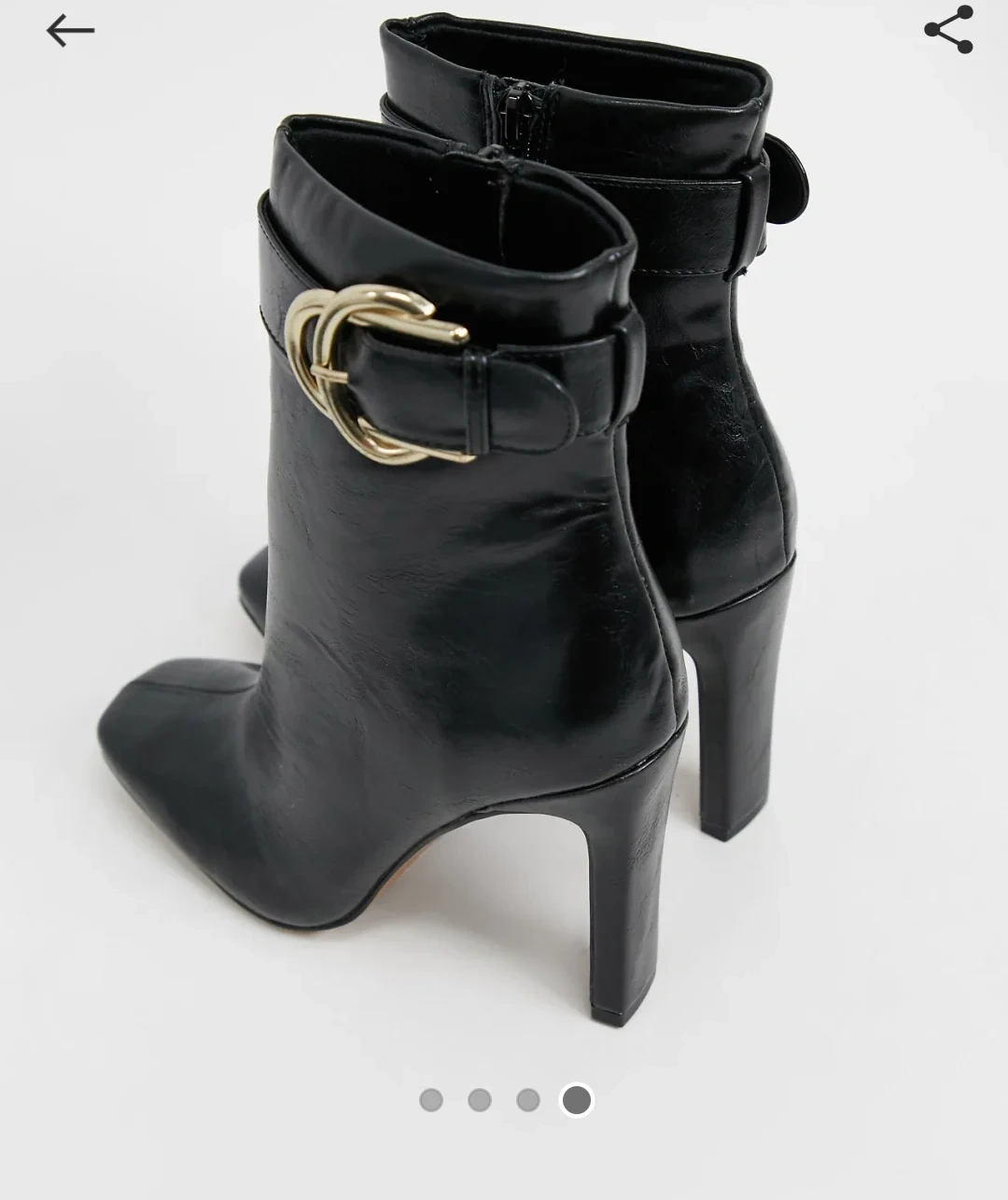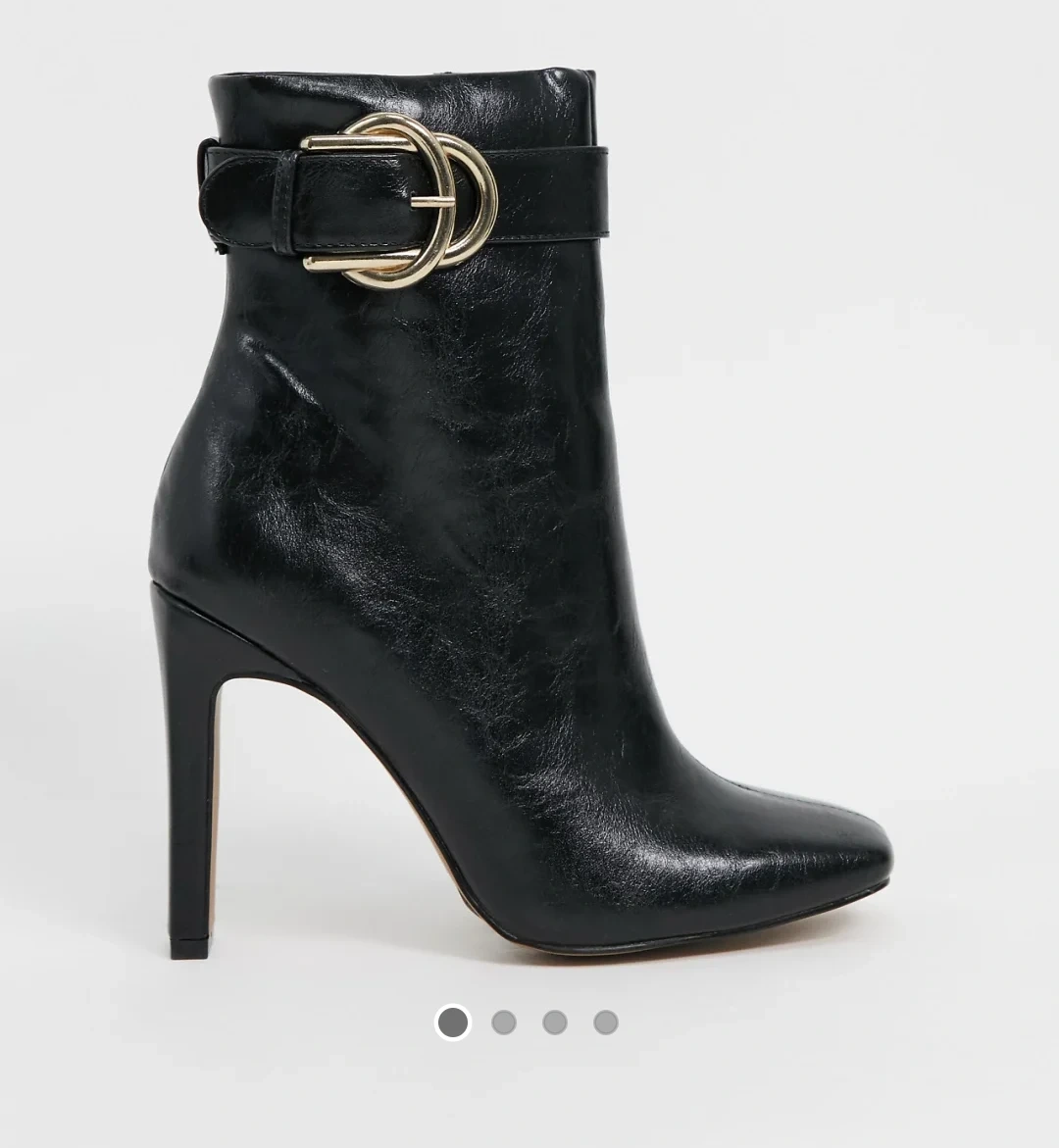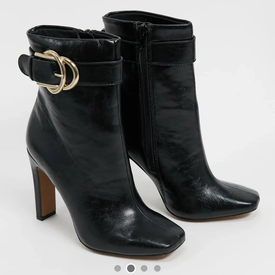 Stylish black heeled ankle boots from ASOS DESIGN! Features a gold buckle detail and a convenient side zipper. Perfect for adding a touch of elegance to any outfit