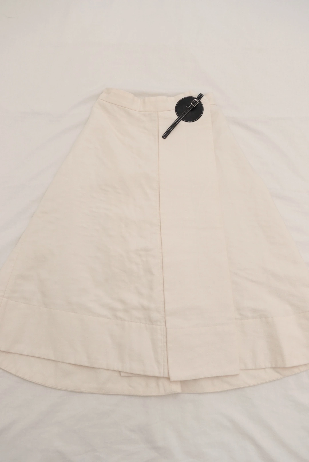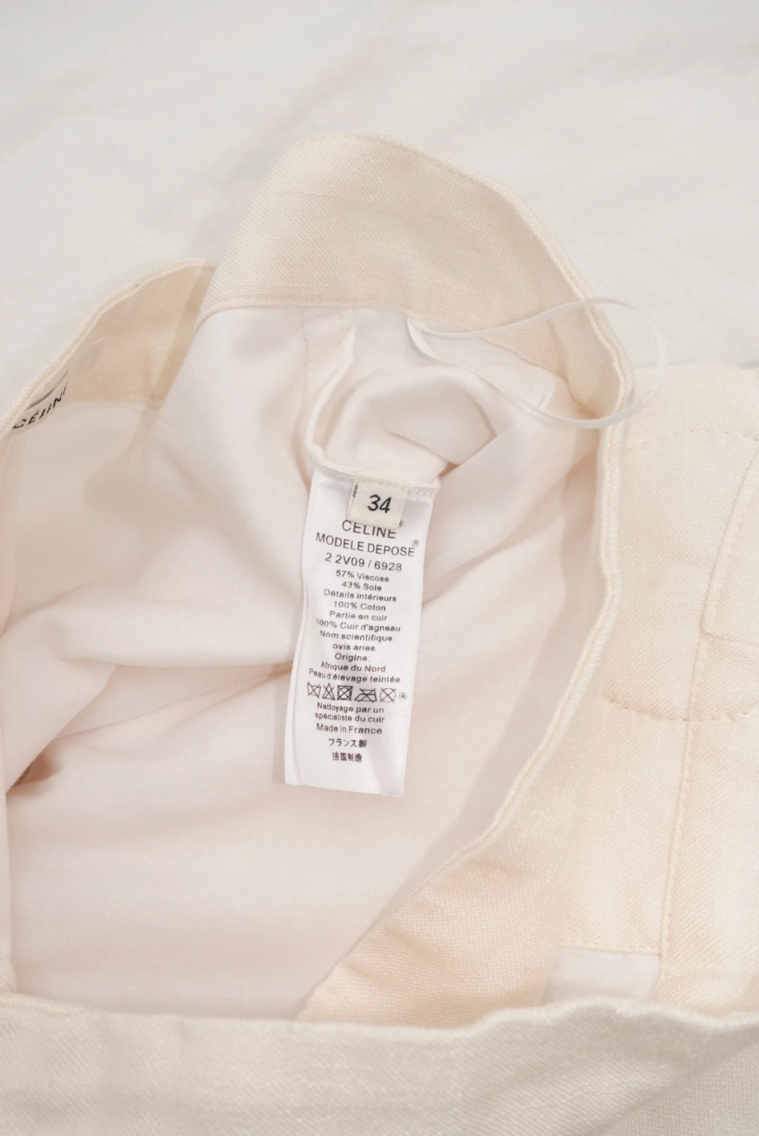 Celine Phoebe Philo Cream A-Line Skirt with Leather Belt Detail