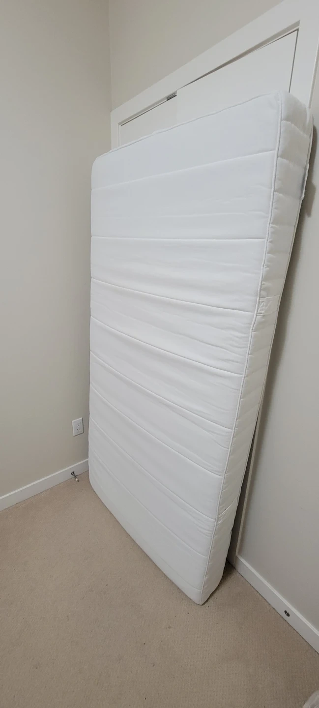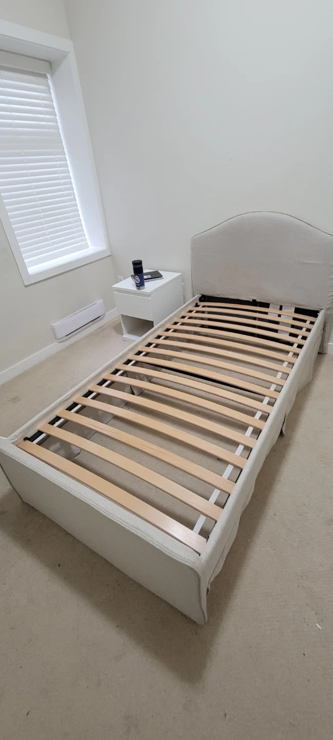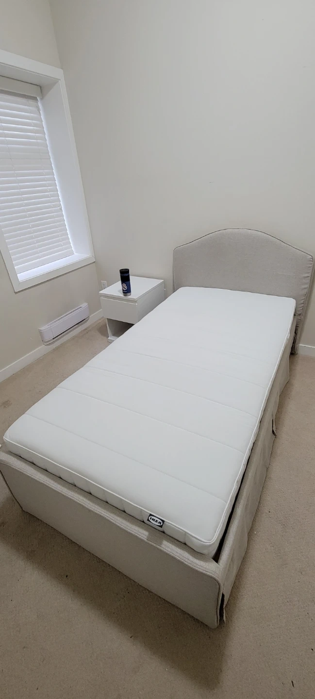 I am relocating and moving out of apartment on Dec 31st, 2025..Selling a single bed frame and mattress from IKEA. It's in great condition and ready for a new home!🛏 Perfect for a small bedroom or guest room. Mattress is clean and comfortable. We can negotiate on price if you would like purchase the single bed frame or mattress separately👍