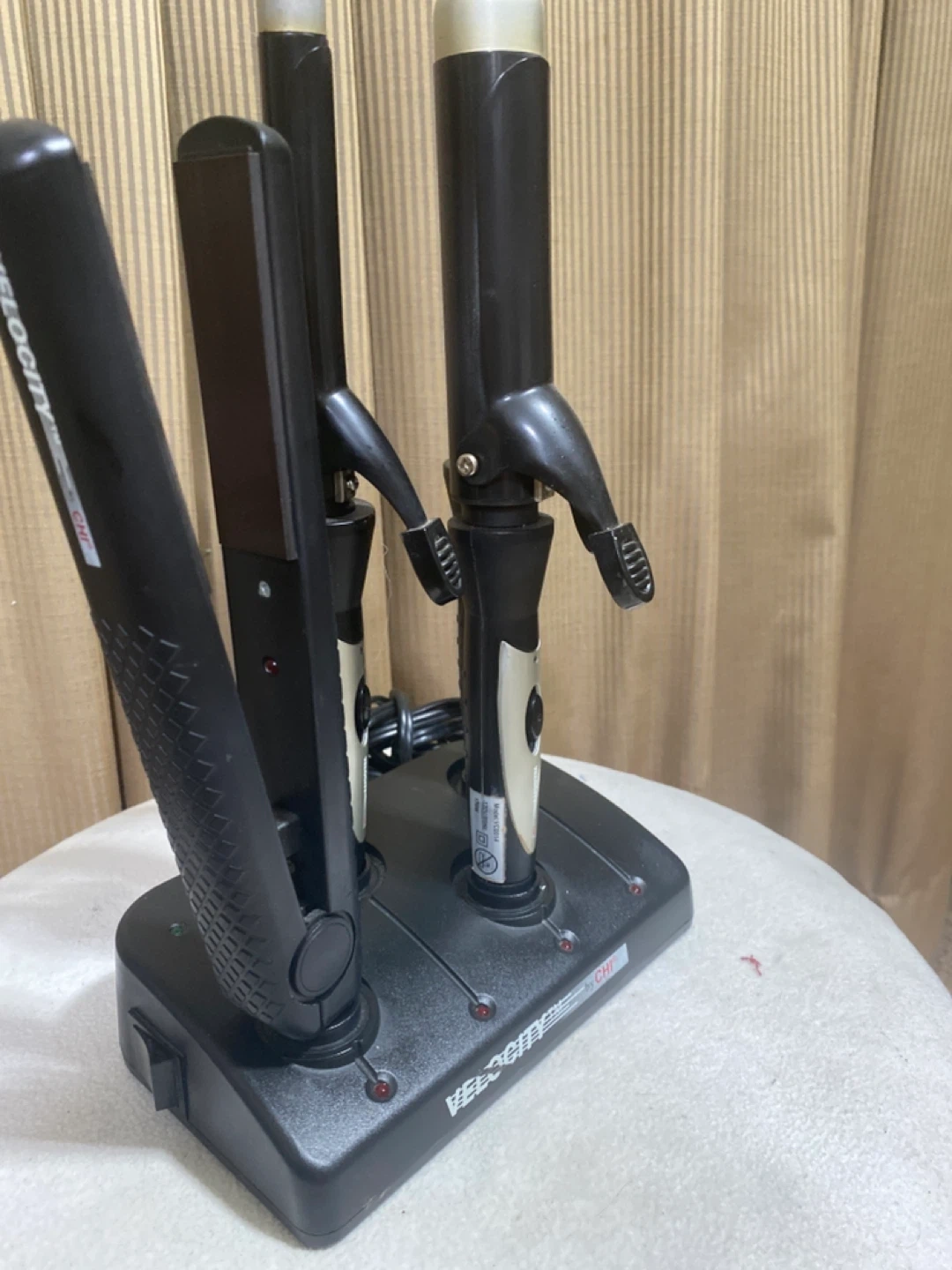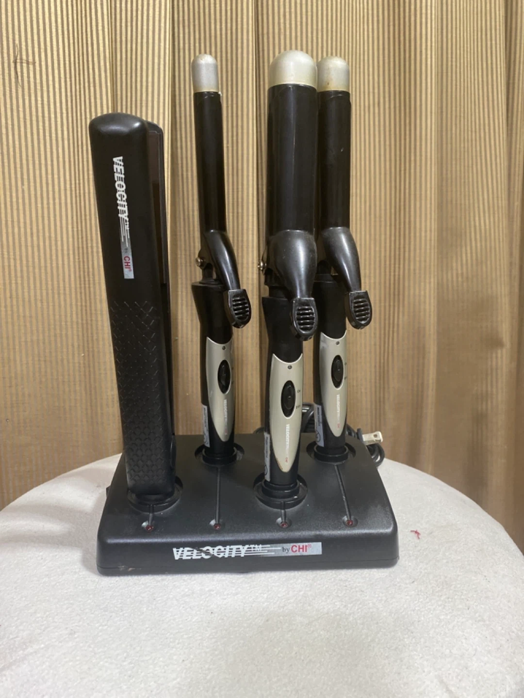 Selling a CHI Velocity hair cordless styling set. Includes a flat iron and three curling iron attachments, all in a convenient stand. Perfect for creating a variety of hairstyles!