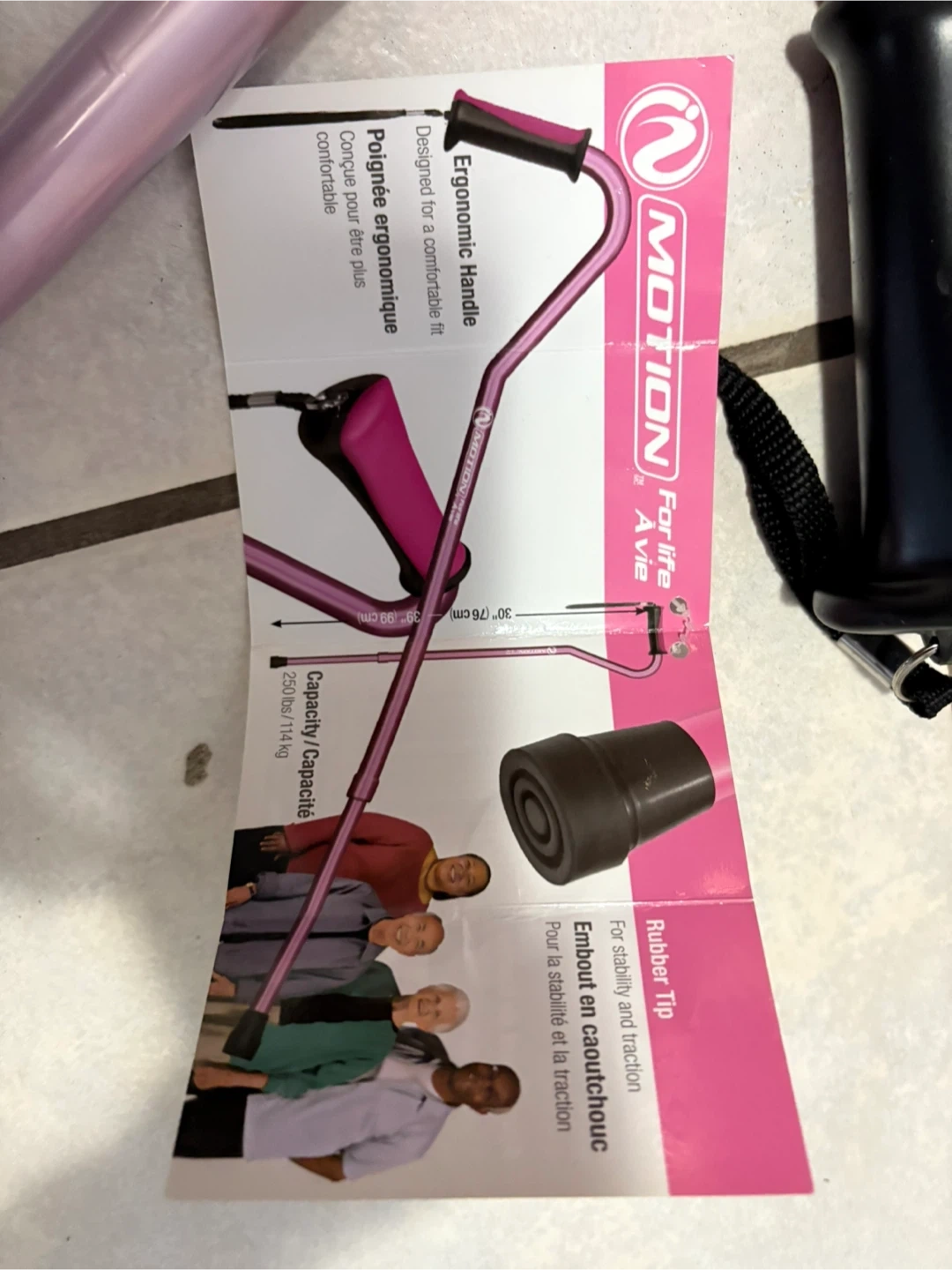 Selling a Motion For Life cane in pink! It features an ergonomic handle for a comfortable fit.