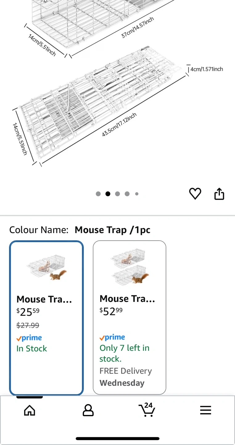Selling a humane animal live cage, perfect for catching mice, chipmunks, squirrels, weasels, and other rodents. It's reusable and suitable for both indoor and outdoor use. The dimensions are approximately 37cm x 14cm x 13.5cm. Originally bought for $25.59.