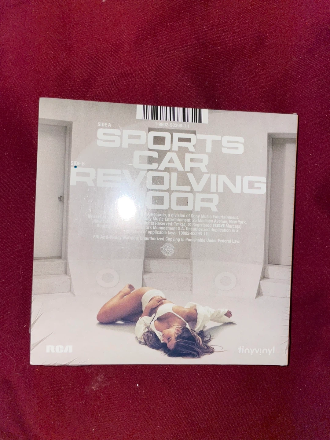 Here's a tiny vinyl record of Sports Car Revolving Door. It's marked as 'only at Target'. The record label is RCA.