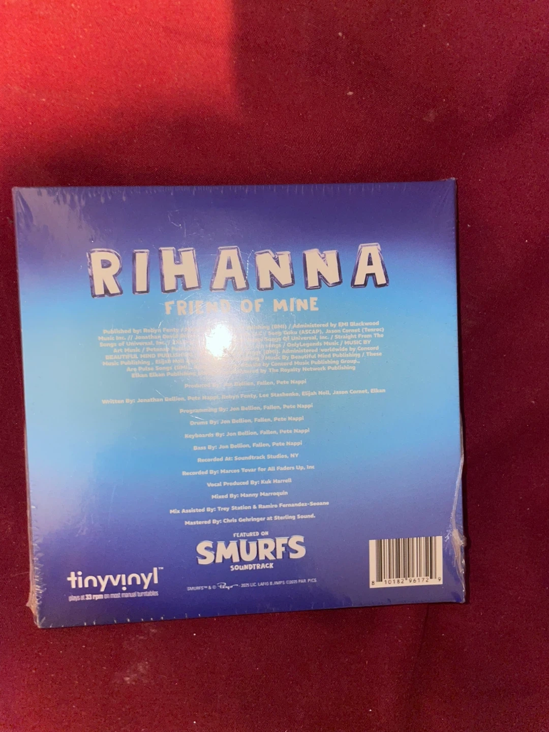 Selling a brand new copy of Rihanna's 'Friend of Mine' featured on the Smurfs soundtrack! This Tiny Vinyl record plays at 33 rpm