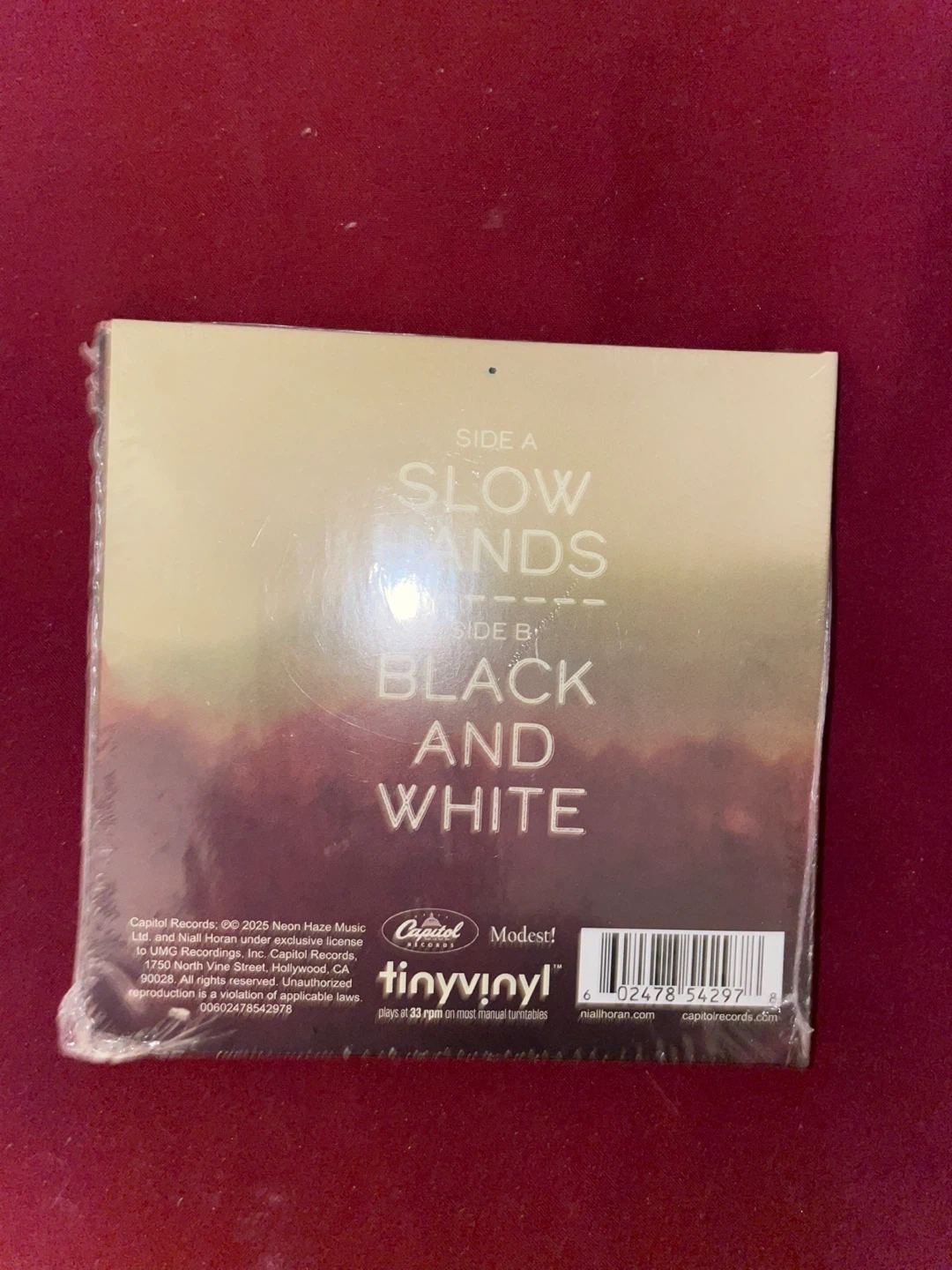 Selling a brand new Niall Horan vinyl record! The record is titled "Slow Hands" and also includes the song "Black and White" on the B side. It's still sealed in its original packaging, ready for a new home on your turntable