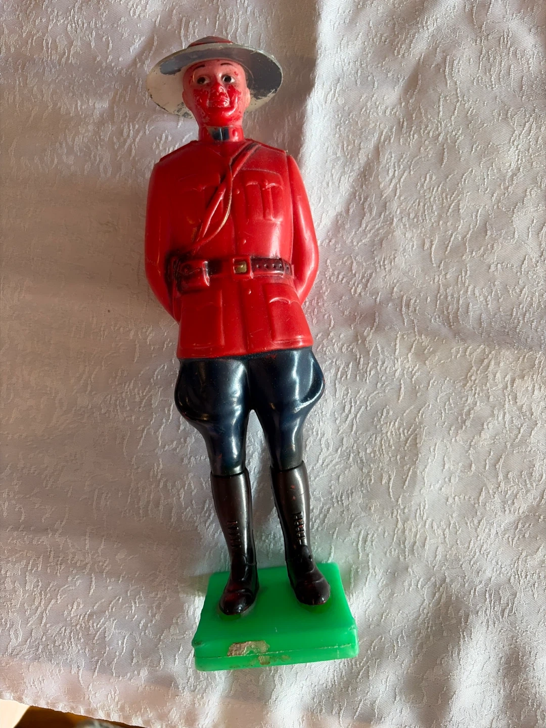 Selling a vintage RCMP figure made in Canada by Regal Toy LTD Toronto Ontario. It is in good condition considering its age. A great piece of Canadian history!