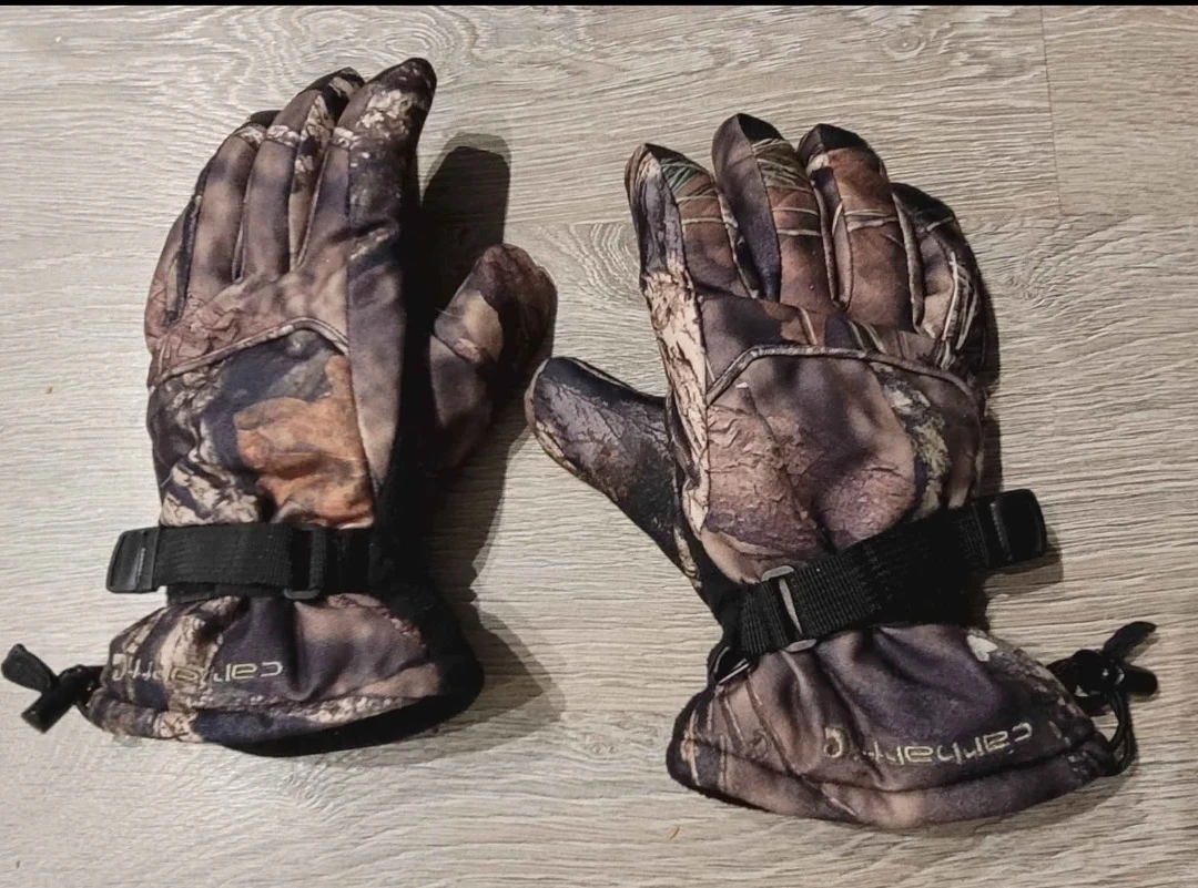 Keep your hands warm and dry with these Carhartt insulated gloves! They feature a camouflage pattern and are waterproof, perfect for outdoor activities. The gloves have adjustable wrist straps for a secure fit.
