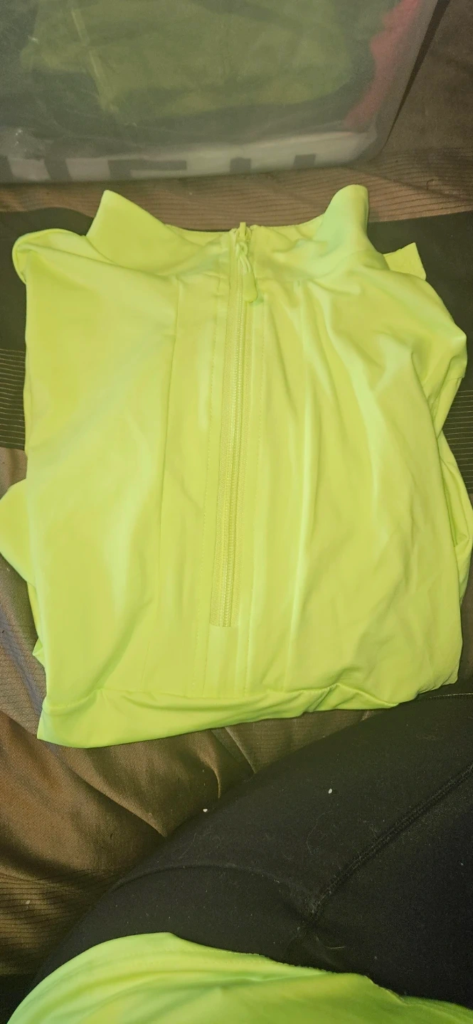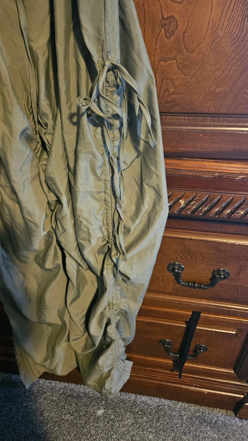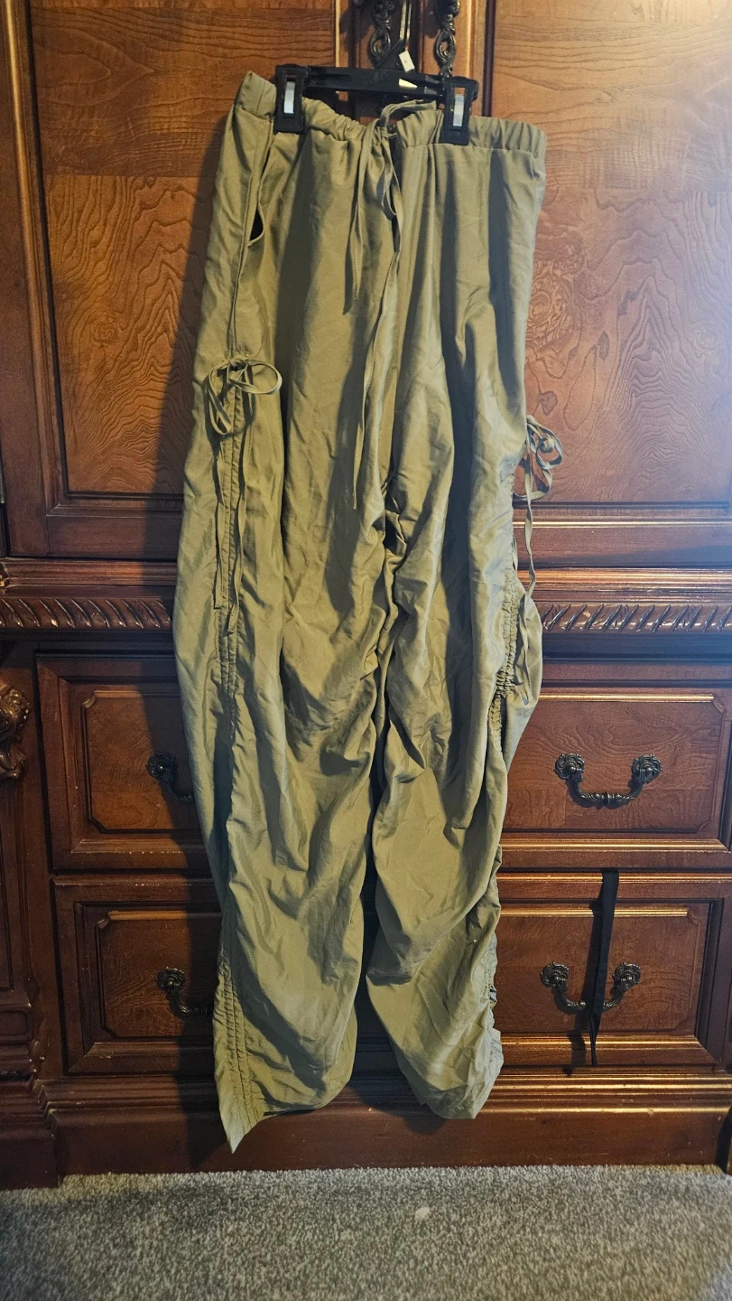 Selling 2 pairs of white pants with tummy control sz small, A neon yellow long sleeve top size small. Olive Green Cargo Pants sz. Large.