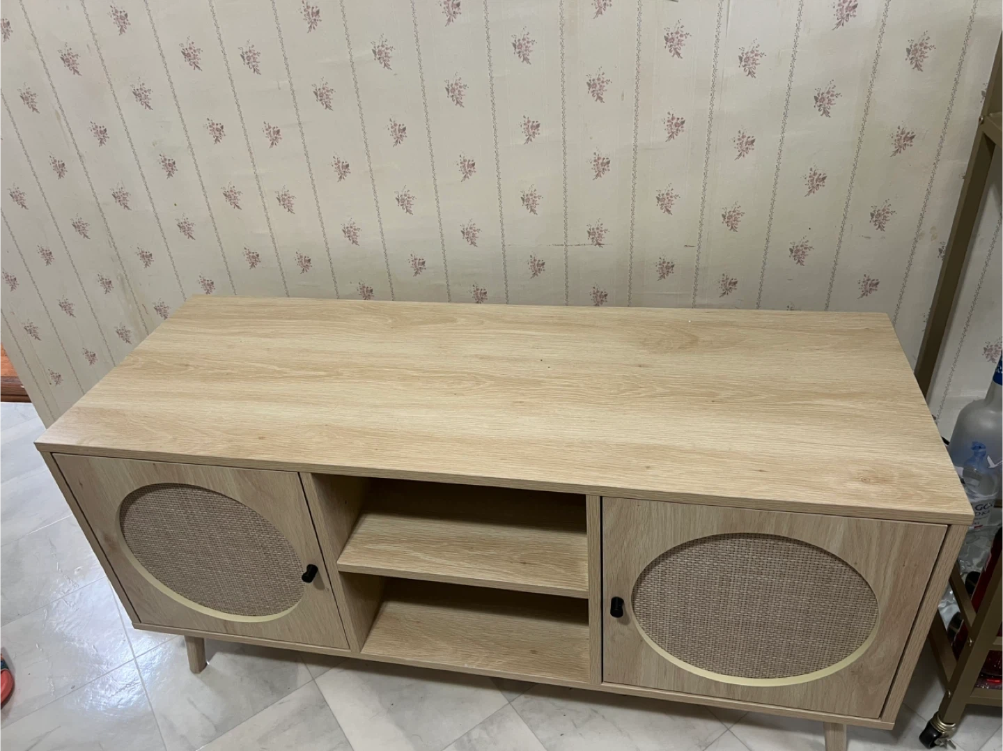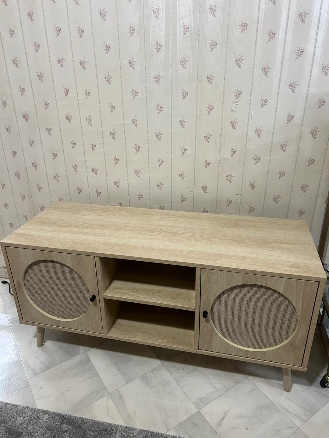Selling a lovely wooden TV stand featuring stylish rattan doors! It's perfect for adding a touch of natural texture to your living room. Great for storing your media devices and other items