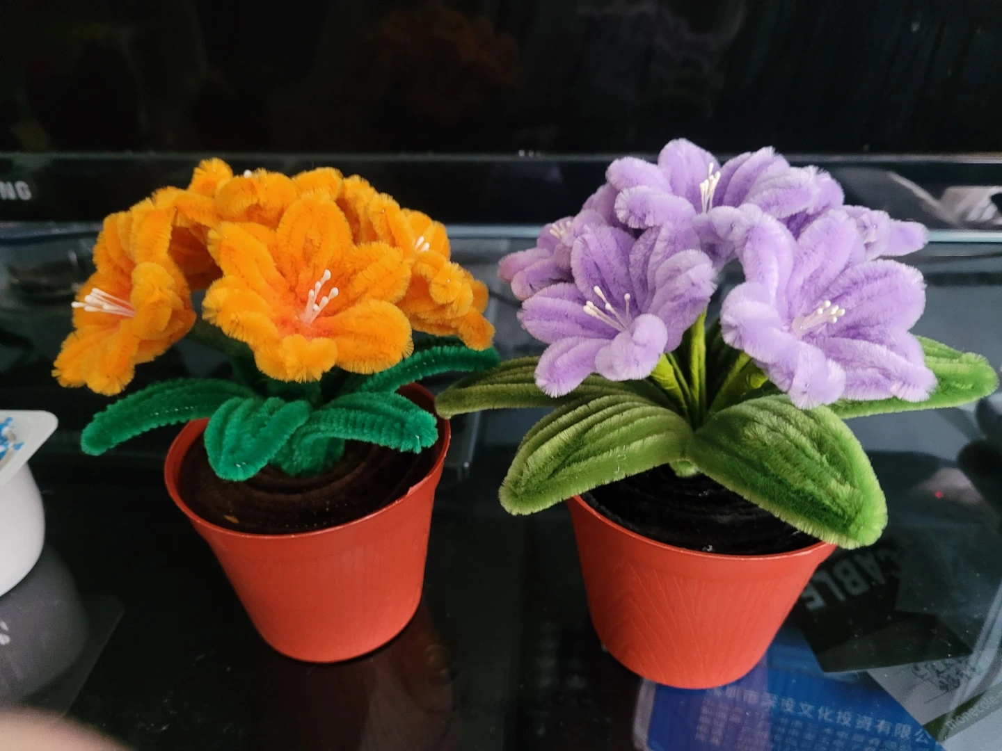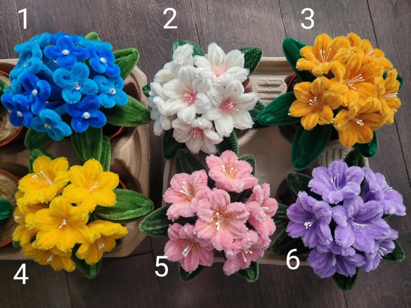 These adorable handmade pipe cleaner flowers in pots are perfect for adding a touch of whimsy to any space. They're a unique and charming decoration for your home or office