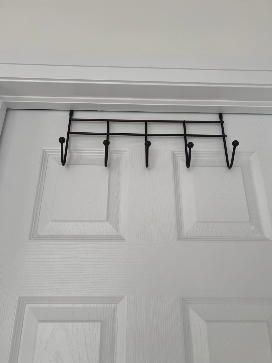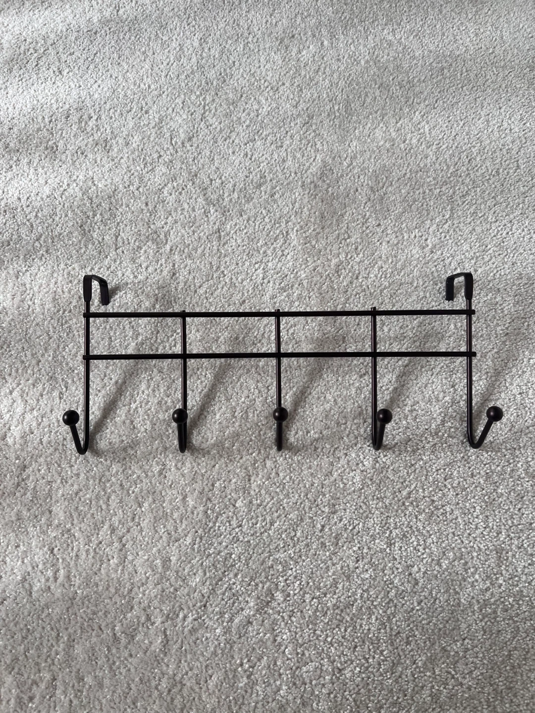 Here's a handy over-the-door hook rack in a dark bronze colour! It's perfect for adding extra hanging space in your closet, bathroom, or any room where you need a little more organization. It's brand new. I am selling it cause it doesn’t fit the spot I got it for.