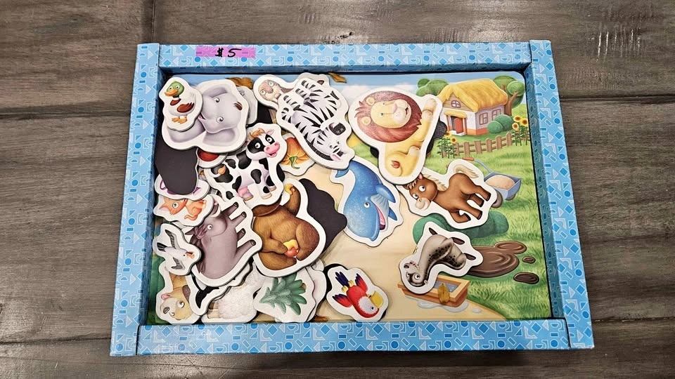 Puzzles, memory game, maze, play doh, magnetic animals, save the