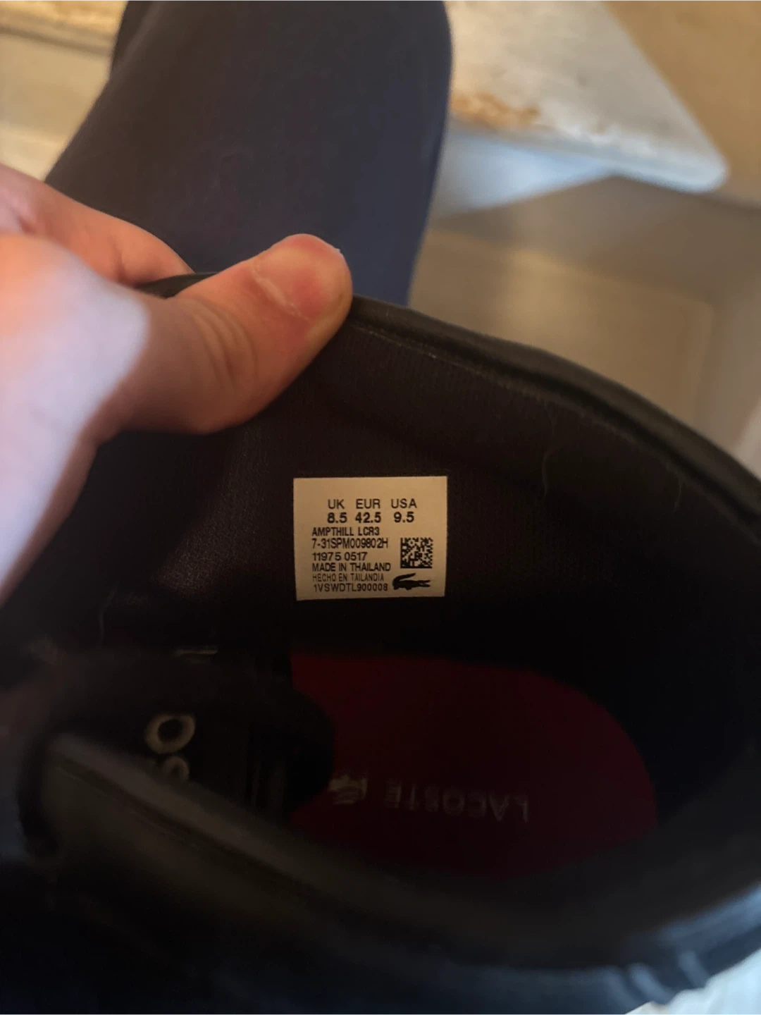 Selling a pair of Lacoste leather sneakers in size 9.5. They're in good condition and ready for a new owner!