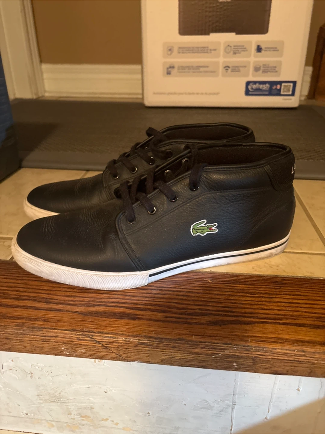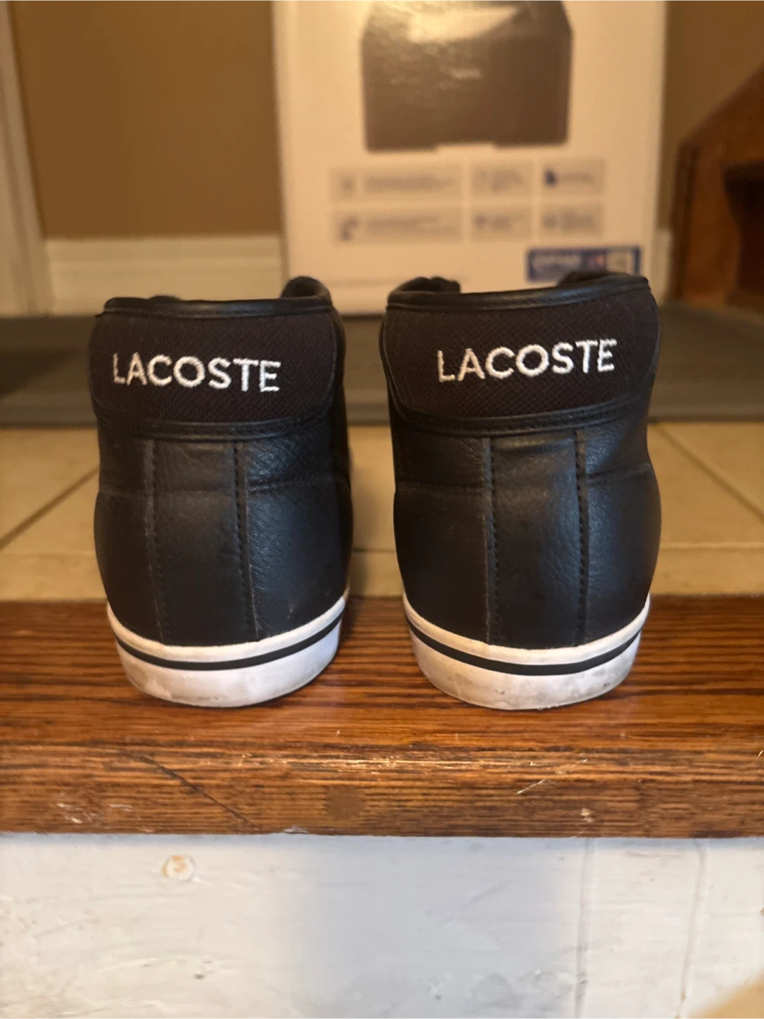 Selling a pair of Lacoste leather sneakers in size 9.5. They're in good condition and ready for a new owner!