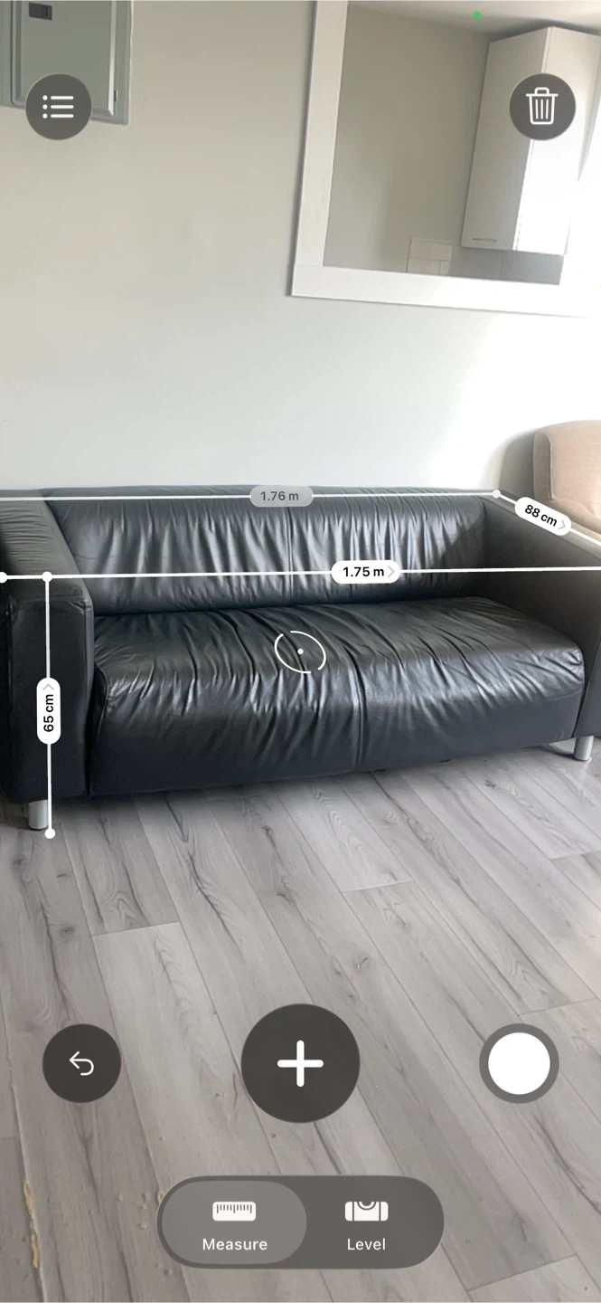Selling a black leather sofa. It's in good condition and measures approximately 1.76m in length, 88cm in width, and 65cm in height. Perfect for a living room or den!