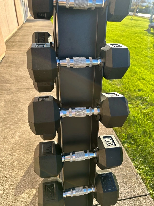 • York Rubber Hex Dumbbell pairs: 5, 10, 15, 20, 25, 30 lbs