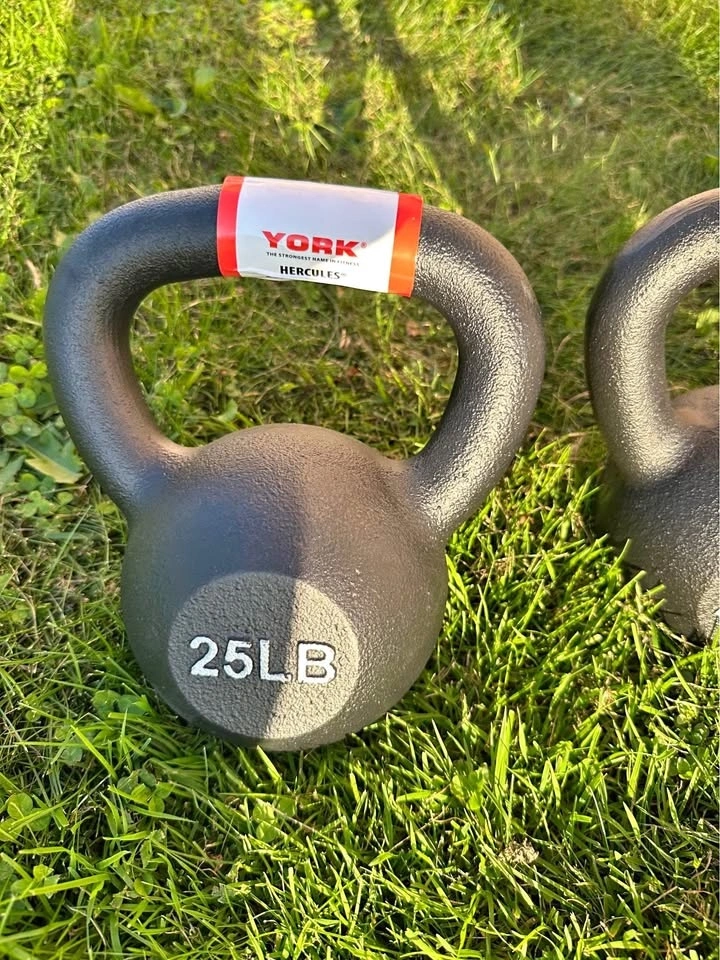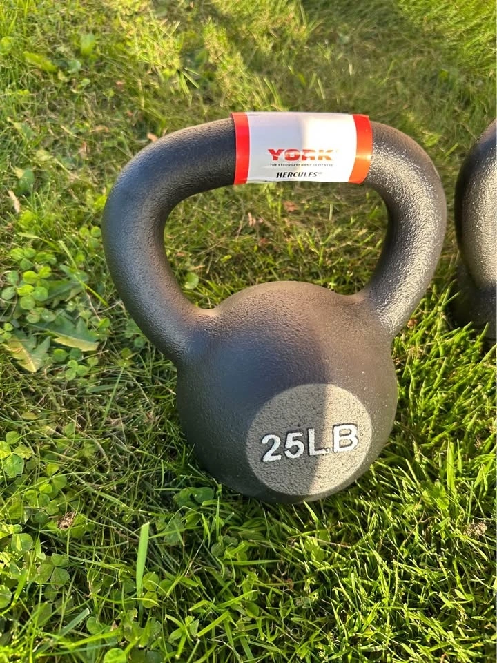 Add a high-quality kettlebell to your home gym! This brand new 25 lb York kettlebell is perfect for strength training, conditioning, and functional workouts. βœ… Features: β€’ 25 lbs of solid cast iron β€’ Durable, long-lasting construction β€’ Smooth finish for a secure, comfortable grip β€’ Ideal for swings, presses, squats, and more β€’ Perfect for home gyms, studios, or personal training πŸ’΅ Price: $50 (brand new) πŸ”₯ Highlights: β€’ Authentic York Fitness quality β€’ Compact, versatile, and easy to store β€’ Great for beginners or anyone building a kettlebell collection πŸ“ Pickup in [your city] Message me to grab this brand new 25 lb York kettlebell before it’s gone!