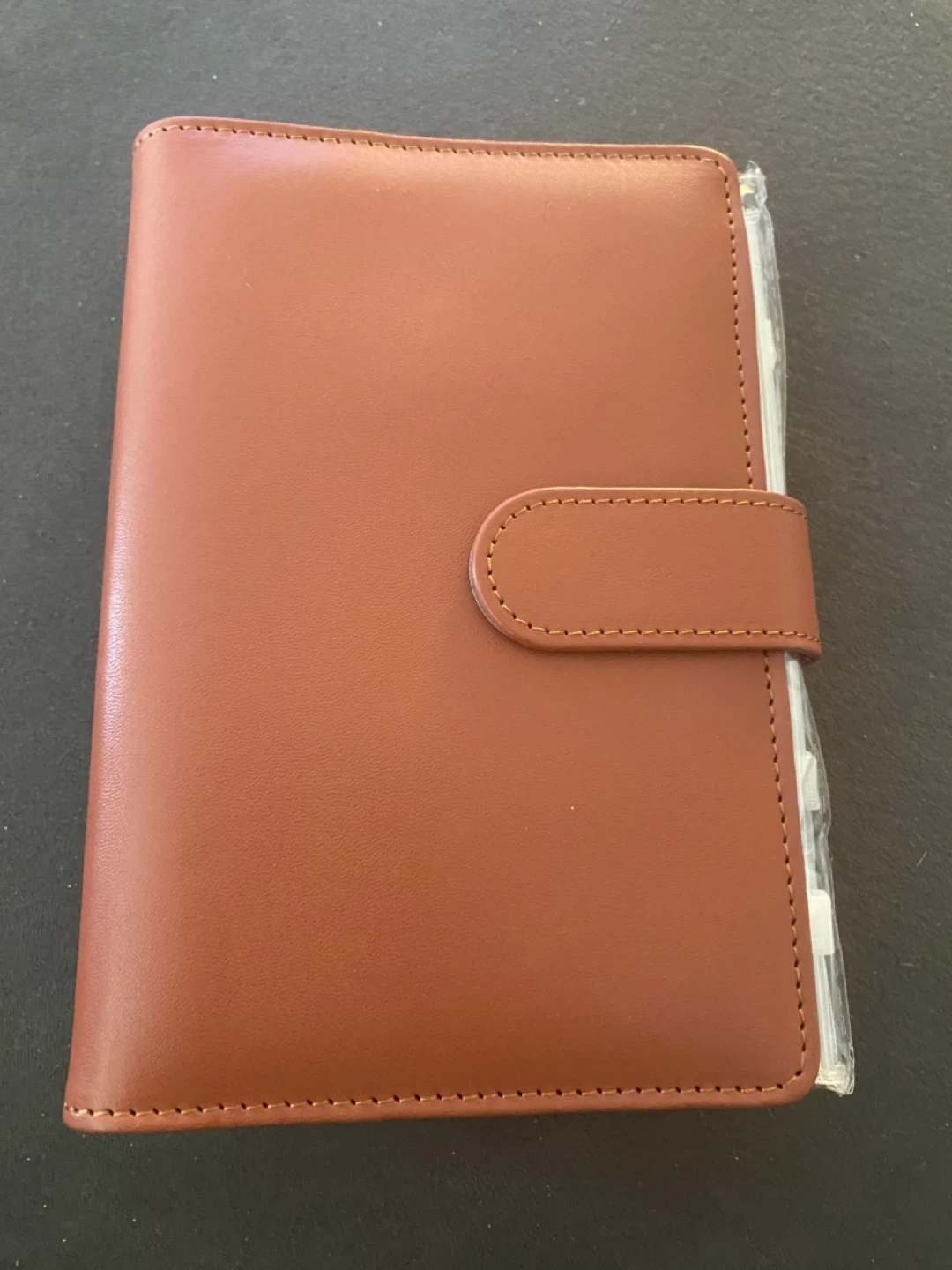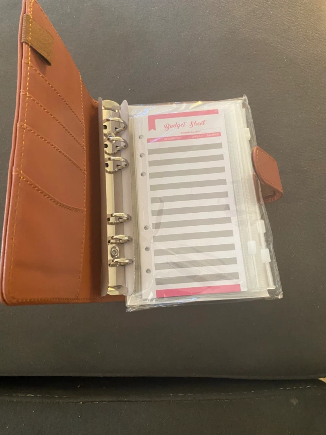 Selling a budget binder in a nice brown colour. It includes budget sheets to help keep track of your income, expenses, and balance