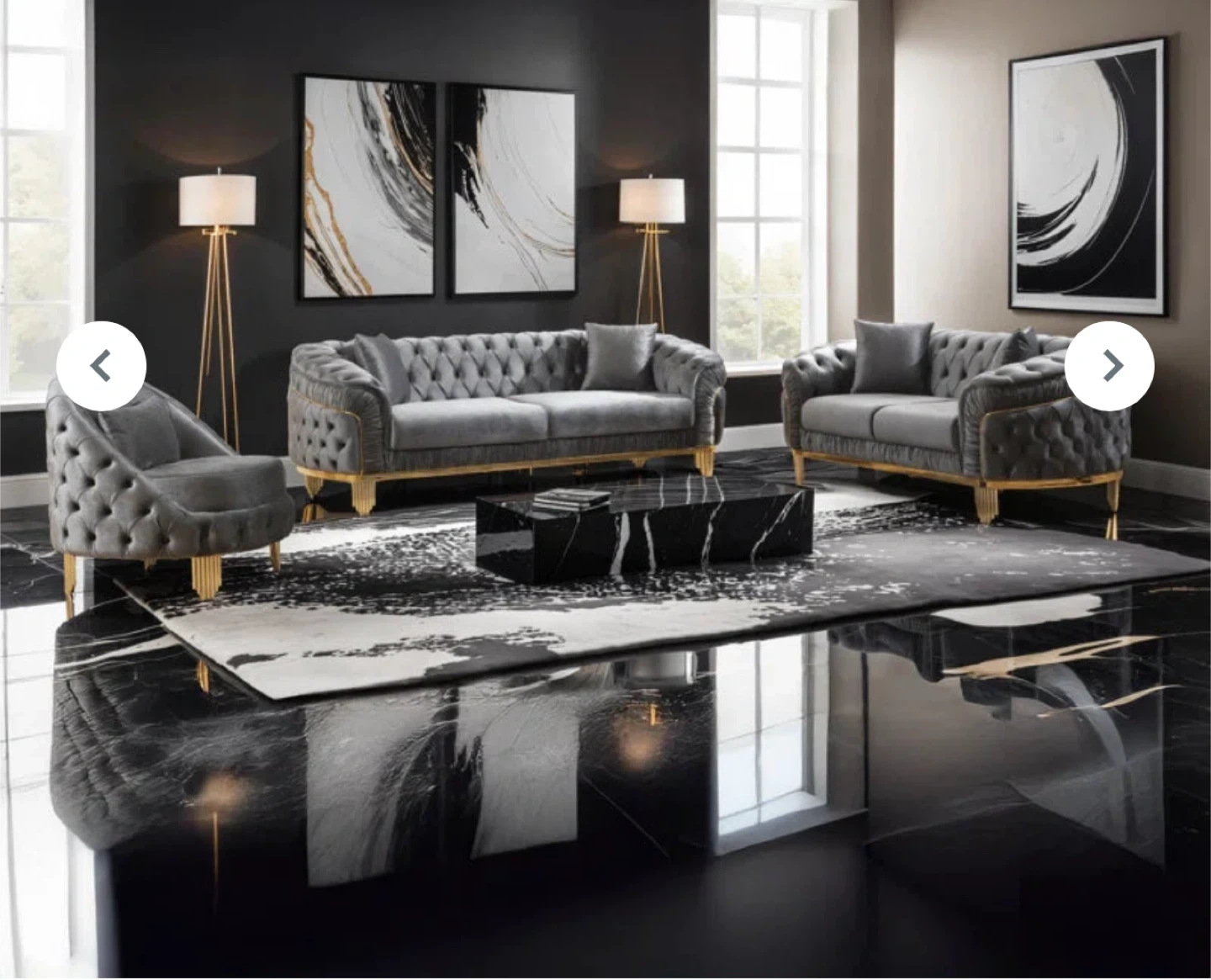 Selling a brand new sofa set still in its original packaging! The body fabric is a beautiful taupe velvet. Originally bought for $5000, it's a steal! Perfect for adding a touch of elegance to any room