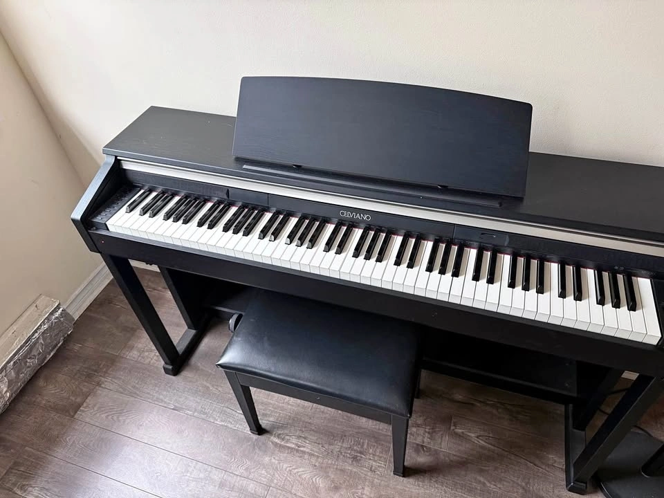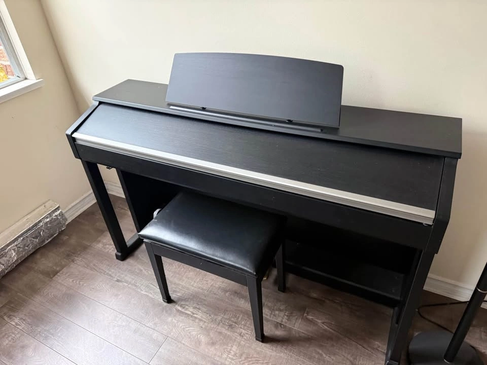 Solid home digital piano with weighted keys and a clean, classic cabinet. The AP-420 delivers a warm, realistic piano tone and a reliable hammer action that feels close to an acoustic without the maintenance.