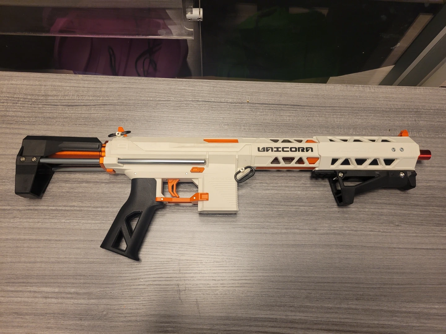 Selling a XYL KM900 Unicorn Tactical Edition Blaster. It is an upgraded version of the extremely popular KM9 Unicorn. Featuring a longer springwell and upper receiver, with the same durable nylon construction, this blaster is a solid choice for many ultra-stock and competitive games.