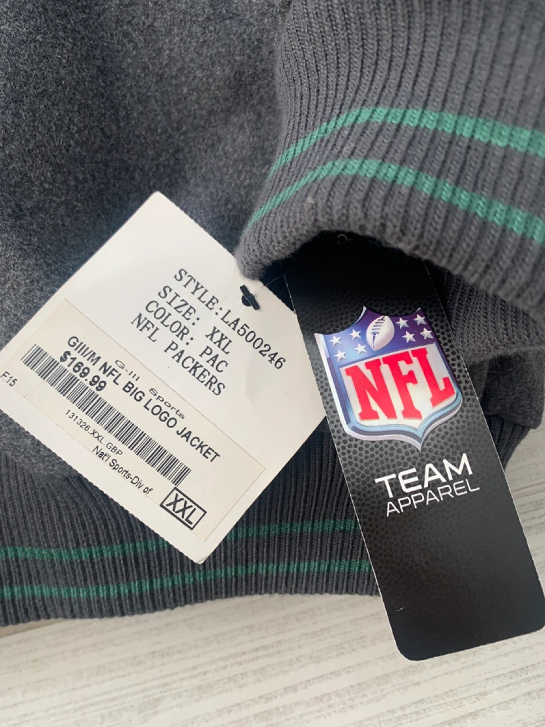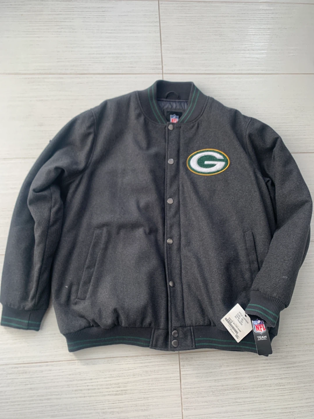Selling a brand new NFL Green Bay Packers Big Logo Jacket in size XXL! The jacket is gray with green accents and features the Packers logo. The original price was $169.99.