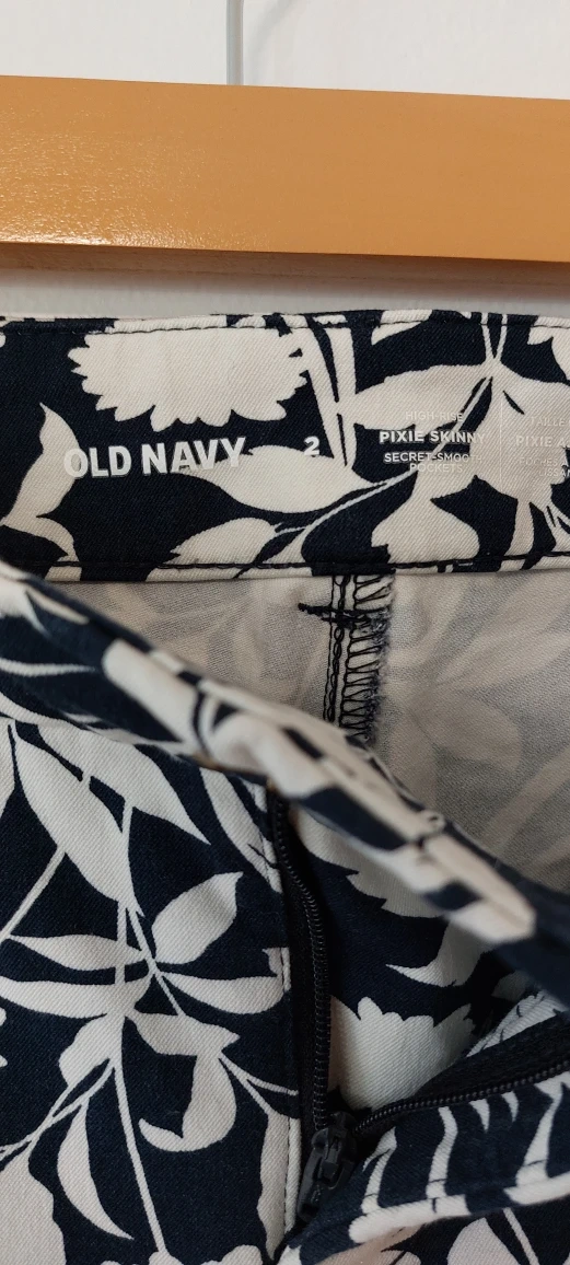Selling a pair of Old Navy Pixie Skinny pants in size 2. They feature a lovely floral pattern. Perfect for adding a touch of style to your wardrobe!