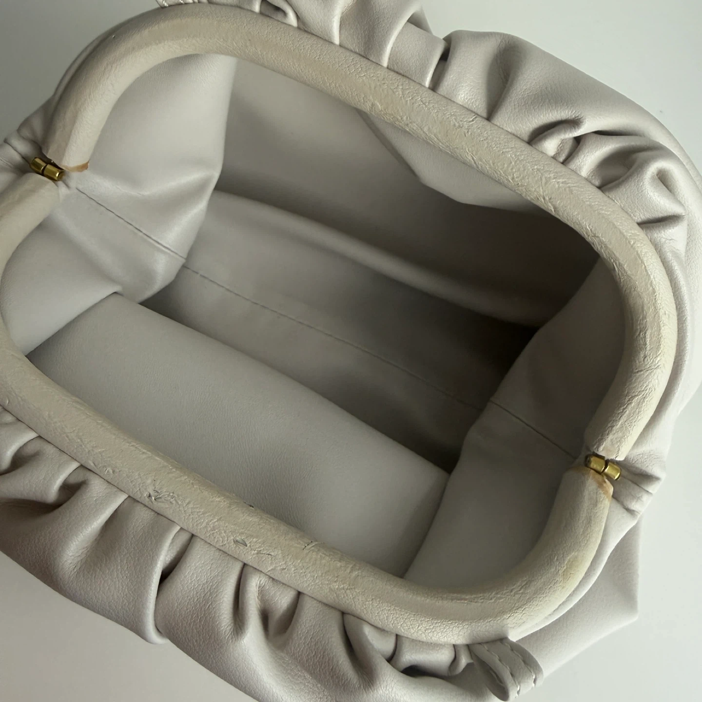 White genuine leather mini cloud clutch