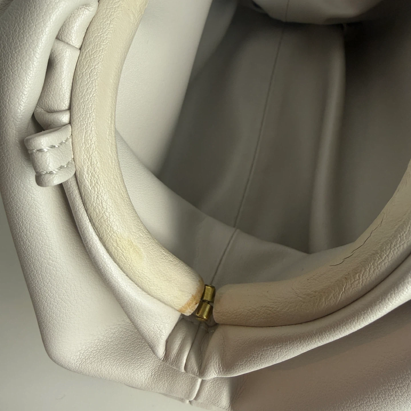 White genuine leather mini cloud clutch