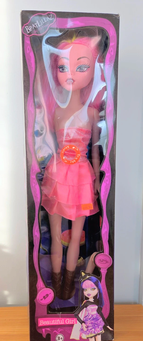 Never been played with, but one arm keeps coming off, a Bratzillaz doll in its original box! The doll is dressed in a pink dress and has brown boots. The box says "Beautiful Girl" and has an age recommendation of 3+