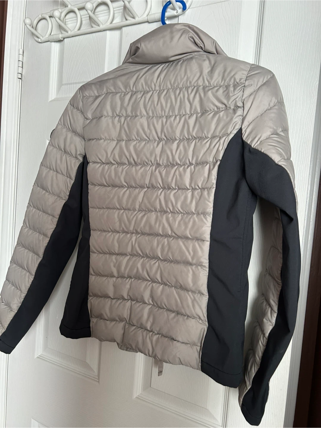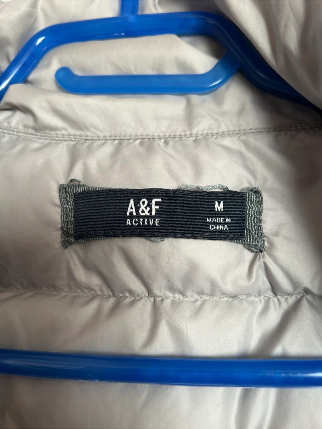 Here's an A&F Active puffer jacket in size medium. It's in great condition and perfect for cooler weather! The jacket features a stylish design with black side panels. It's lightweight and comfortable to wear.
